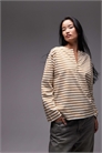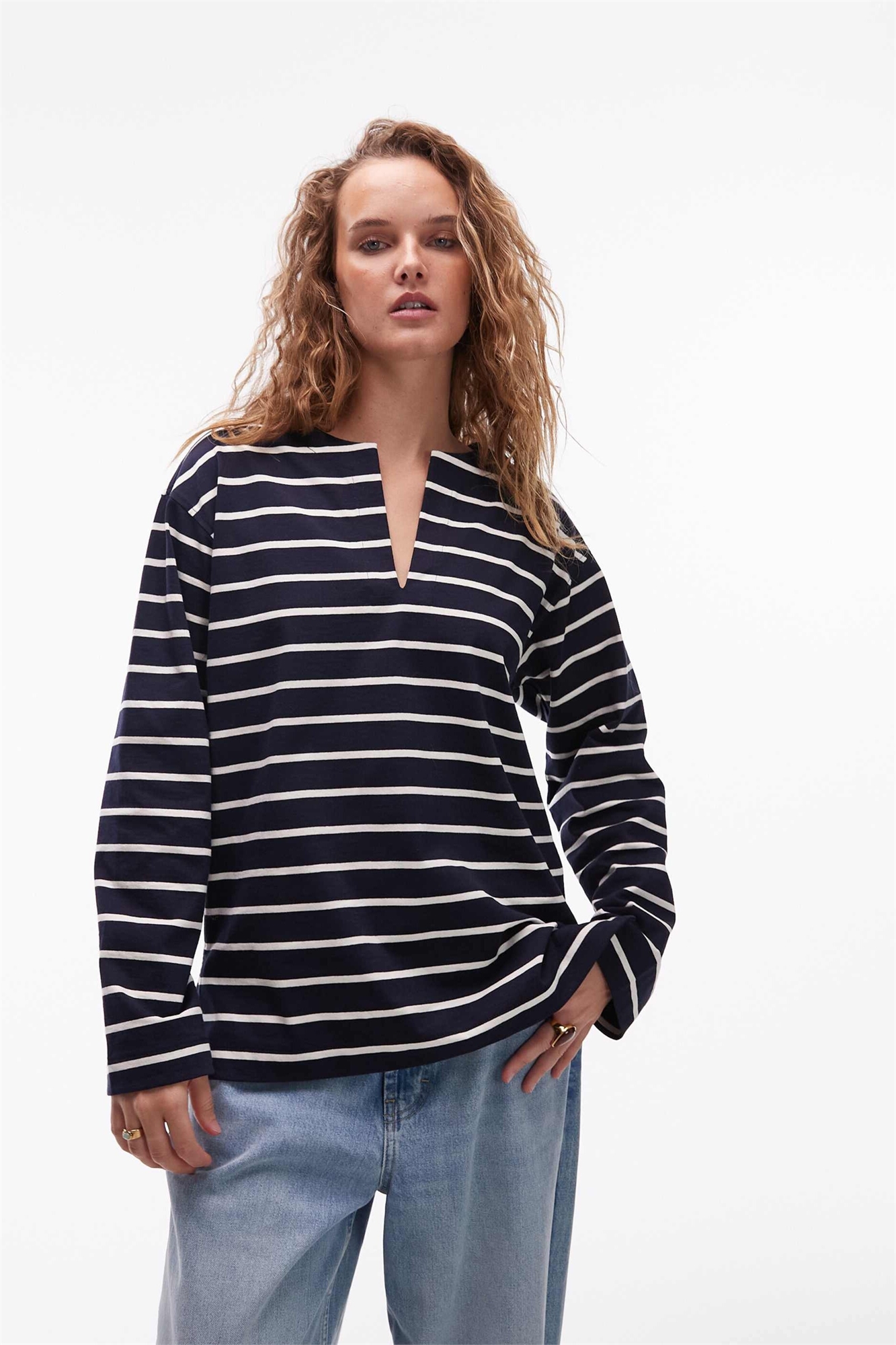 Футболка из джерси свободного кроя с длинными рукавами, открытым V-образным вырезом и боковыми разрезами