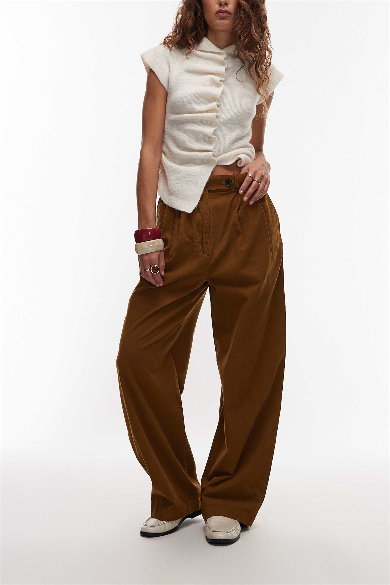 Брюки из вельвета с широкими штанинами и складками, с отделаным поясом