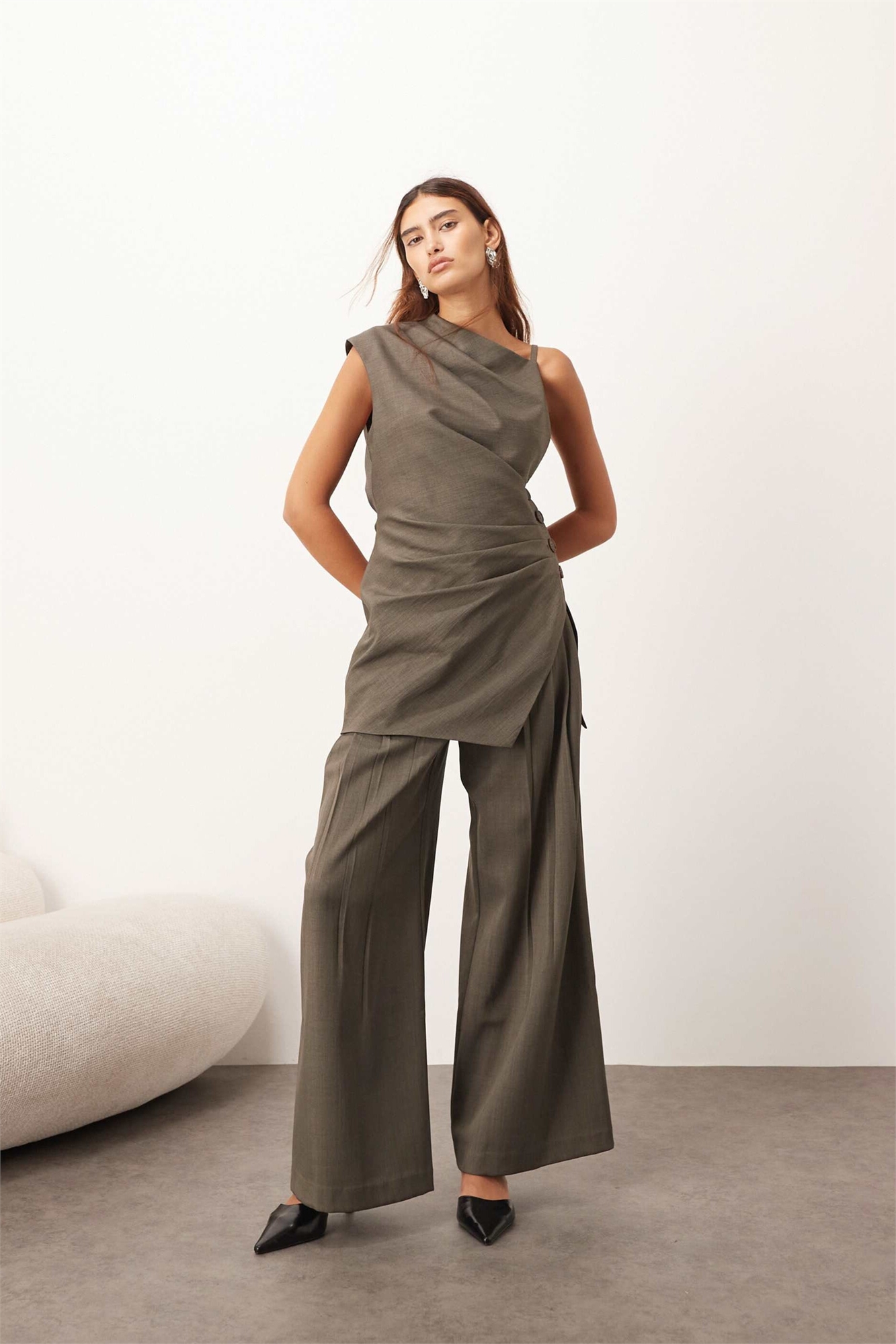 Шерстяные брюки с широкими брючинами и складками co-ord