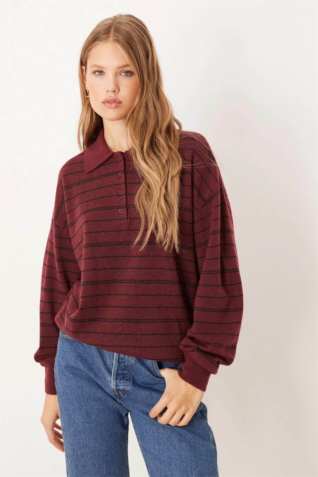 Свитер с длинными рукавами, воротником-поло и вязаным узором