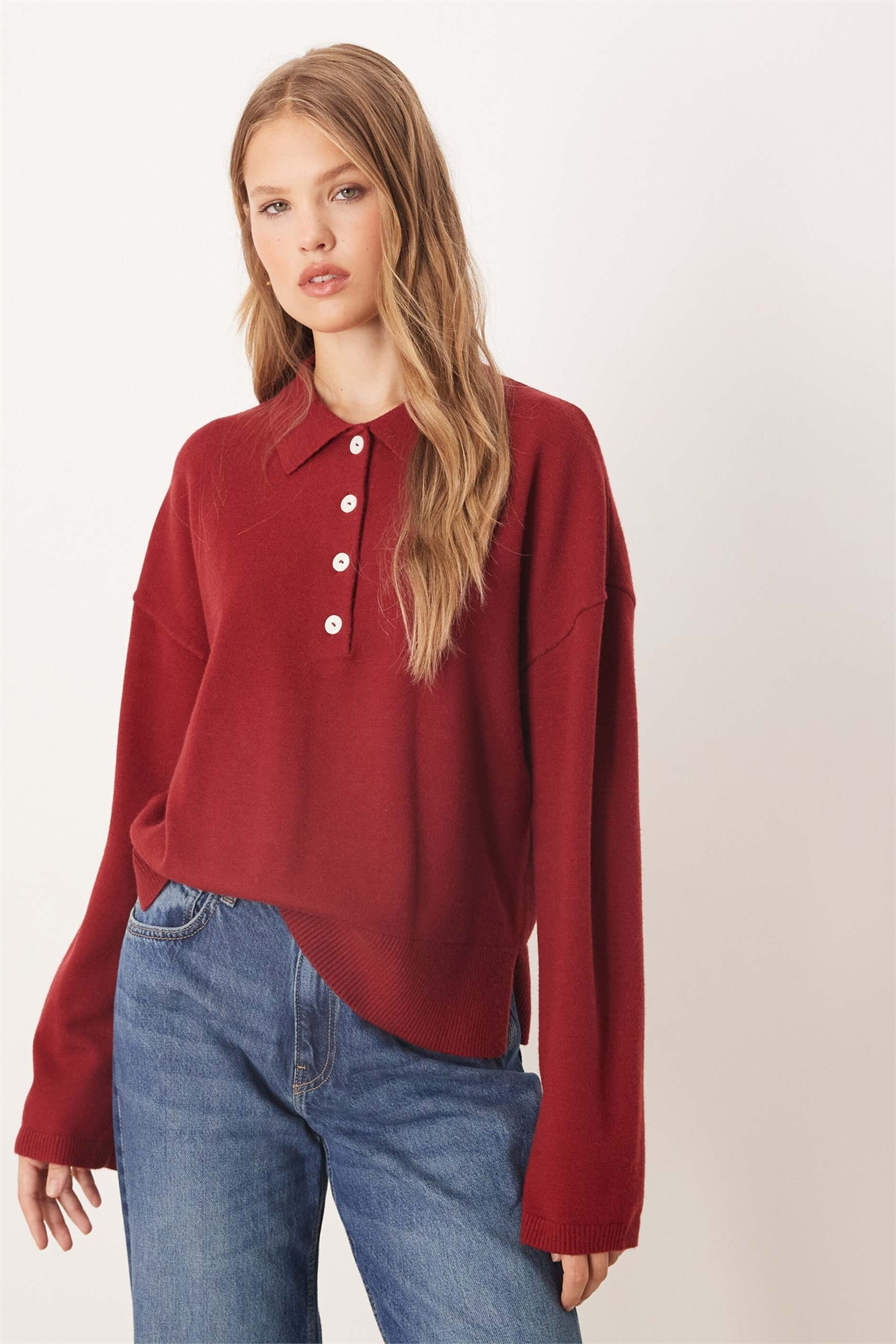 Свитер с длинными рукавами и воротником