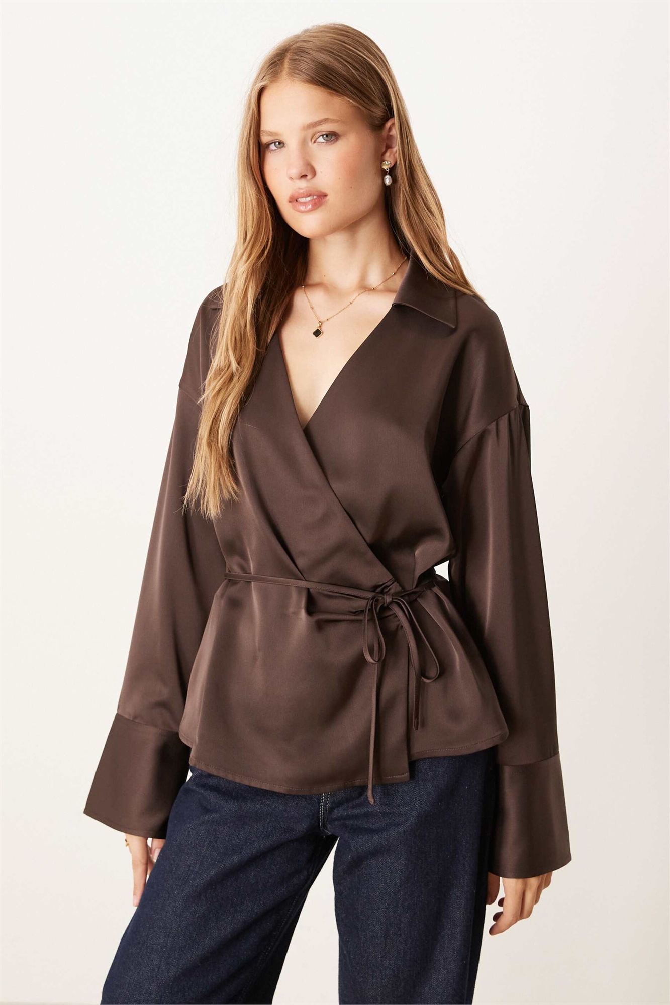 Рубашка из атласа с завязками спереди
