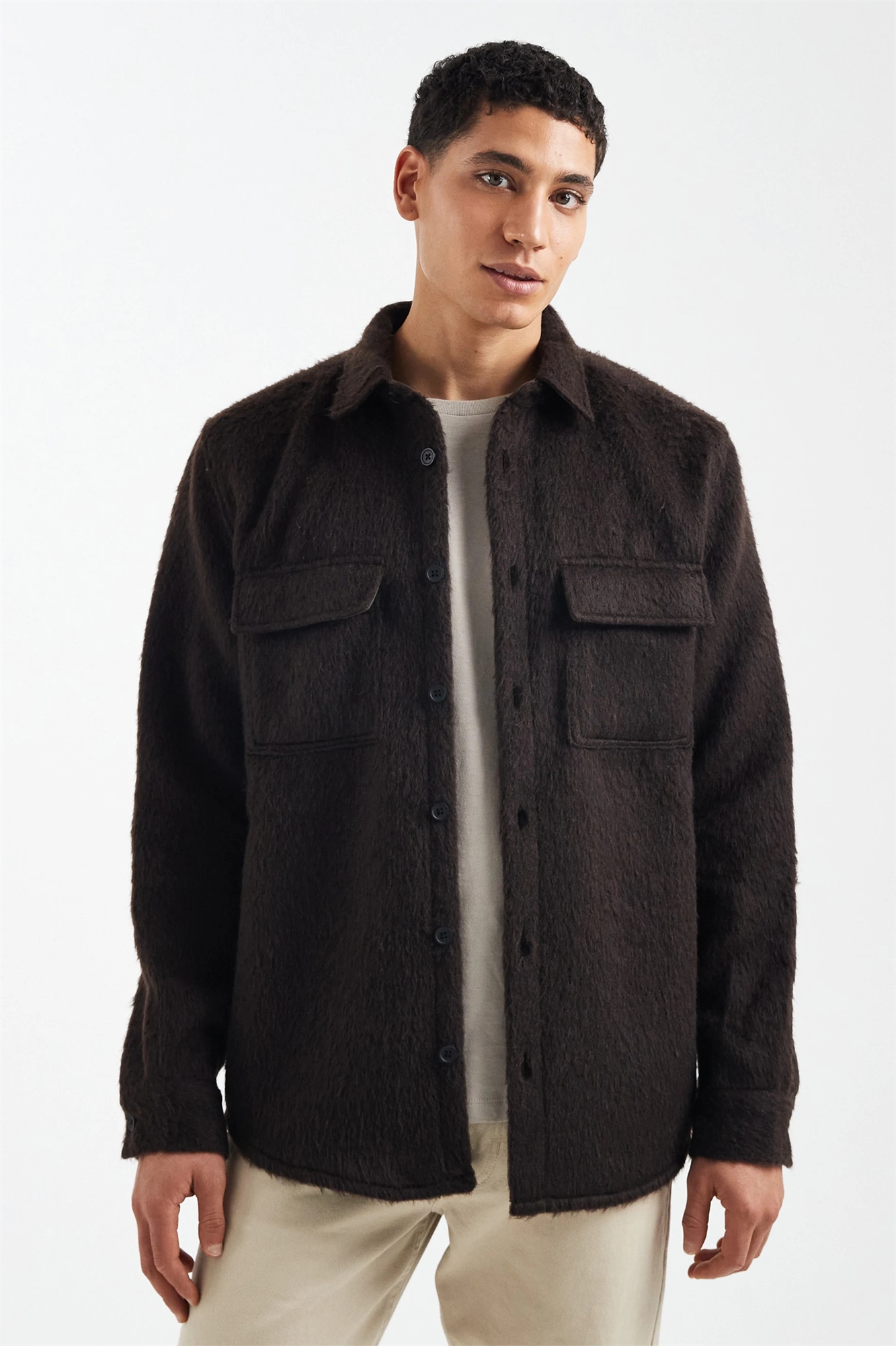 Рубашка-оверсайз с эффектом ворсистой шерсти