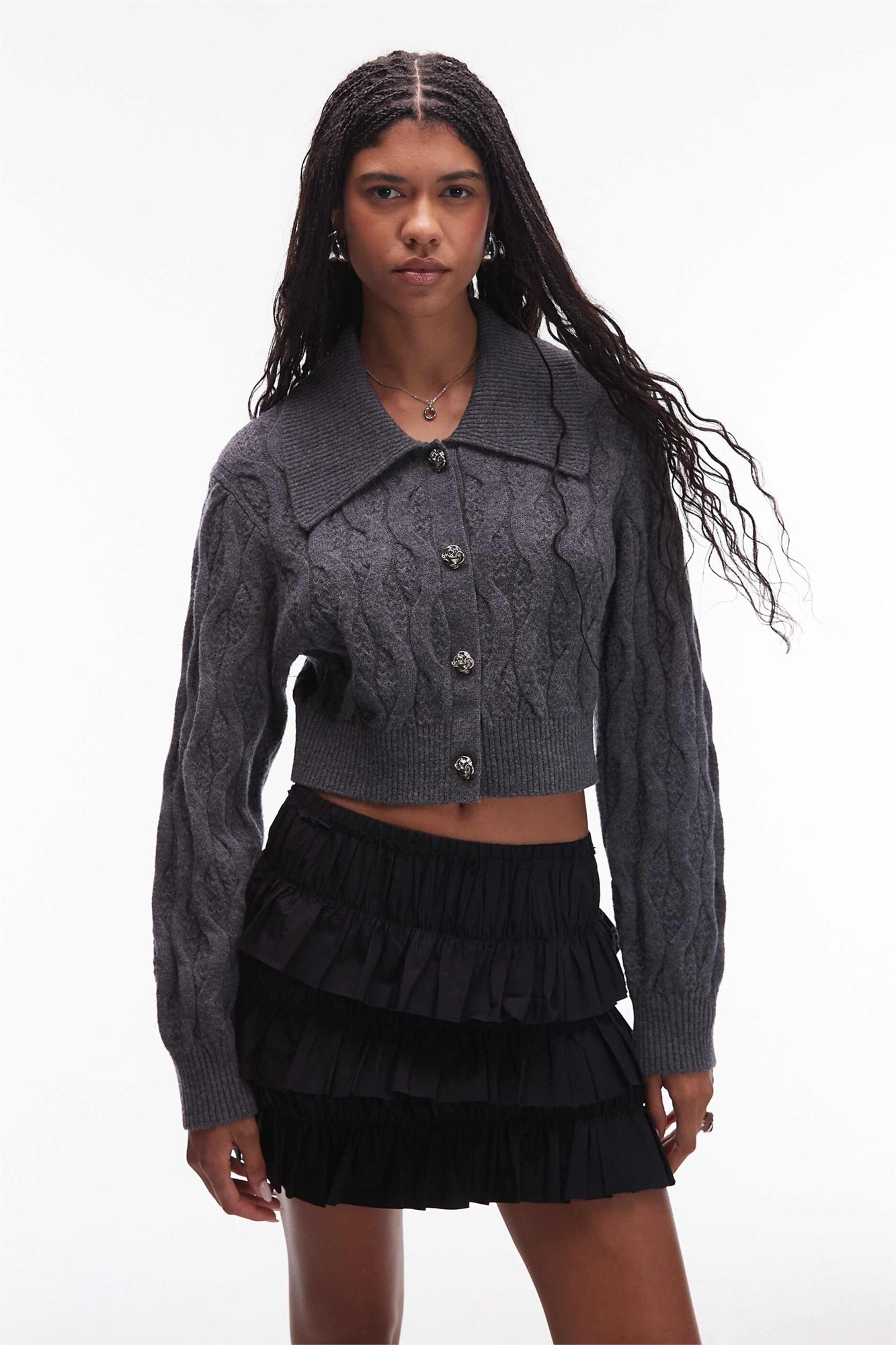 Кардиган из косой вязки с воротником и застежкой на пуговицах