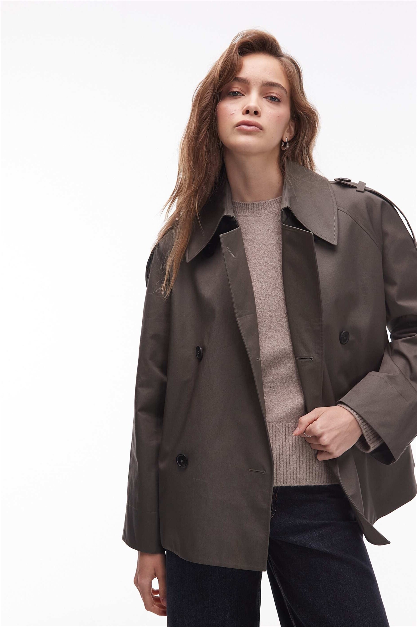 Короткий тренч с выпуклыми плечами