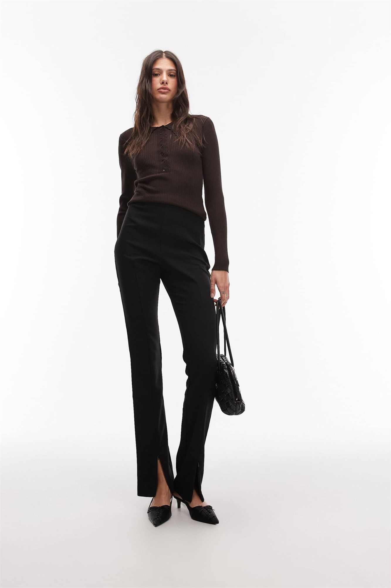 Высокие брюки-скинни с зауженным кроем и застежкой-молнией спереди