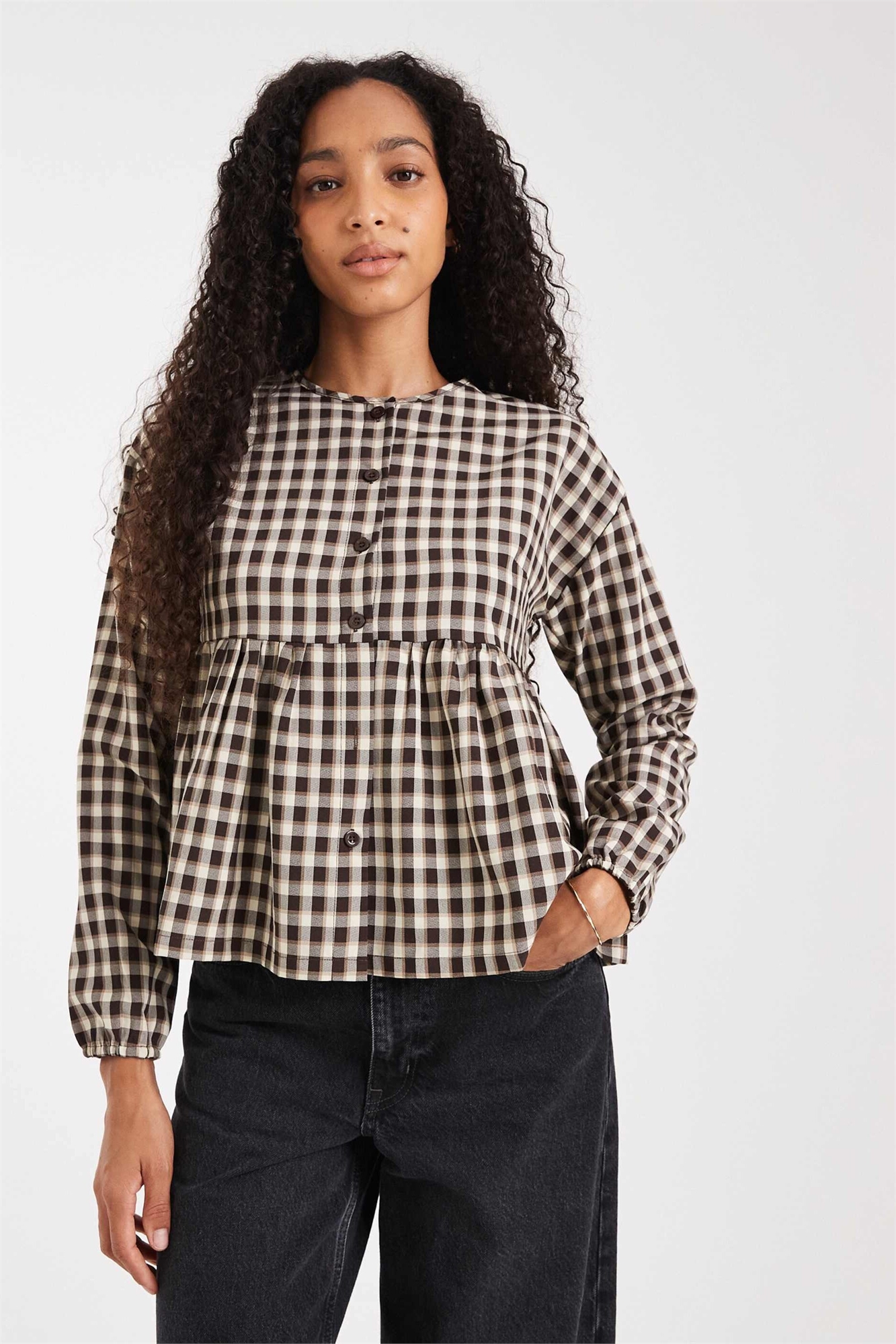 Блузка с длинными рукавами на пуговицах и баской