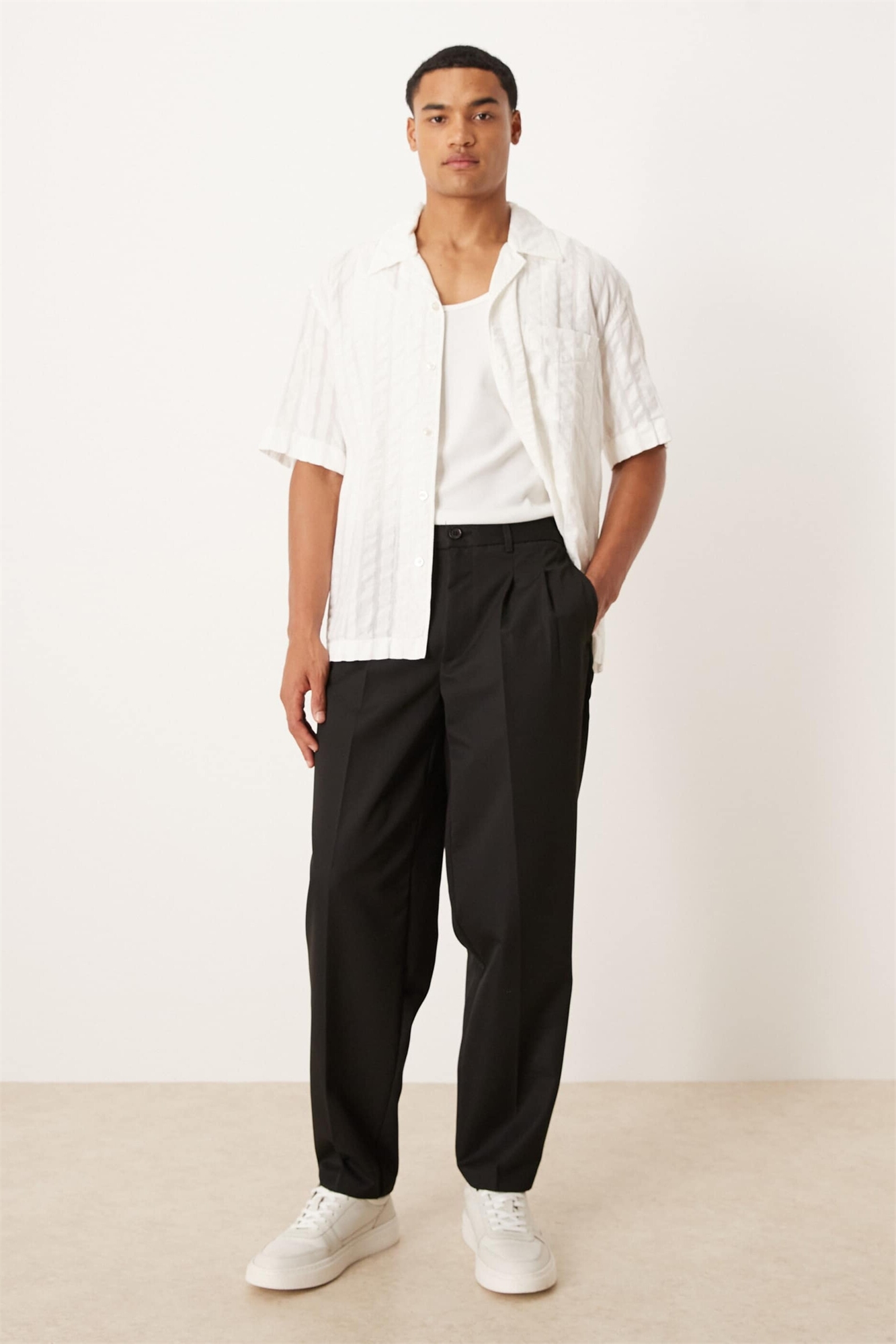 Широкие брюки зауженного кроя с двойной складкой