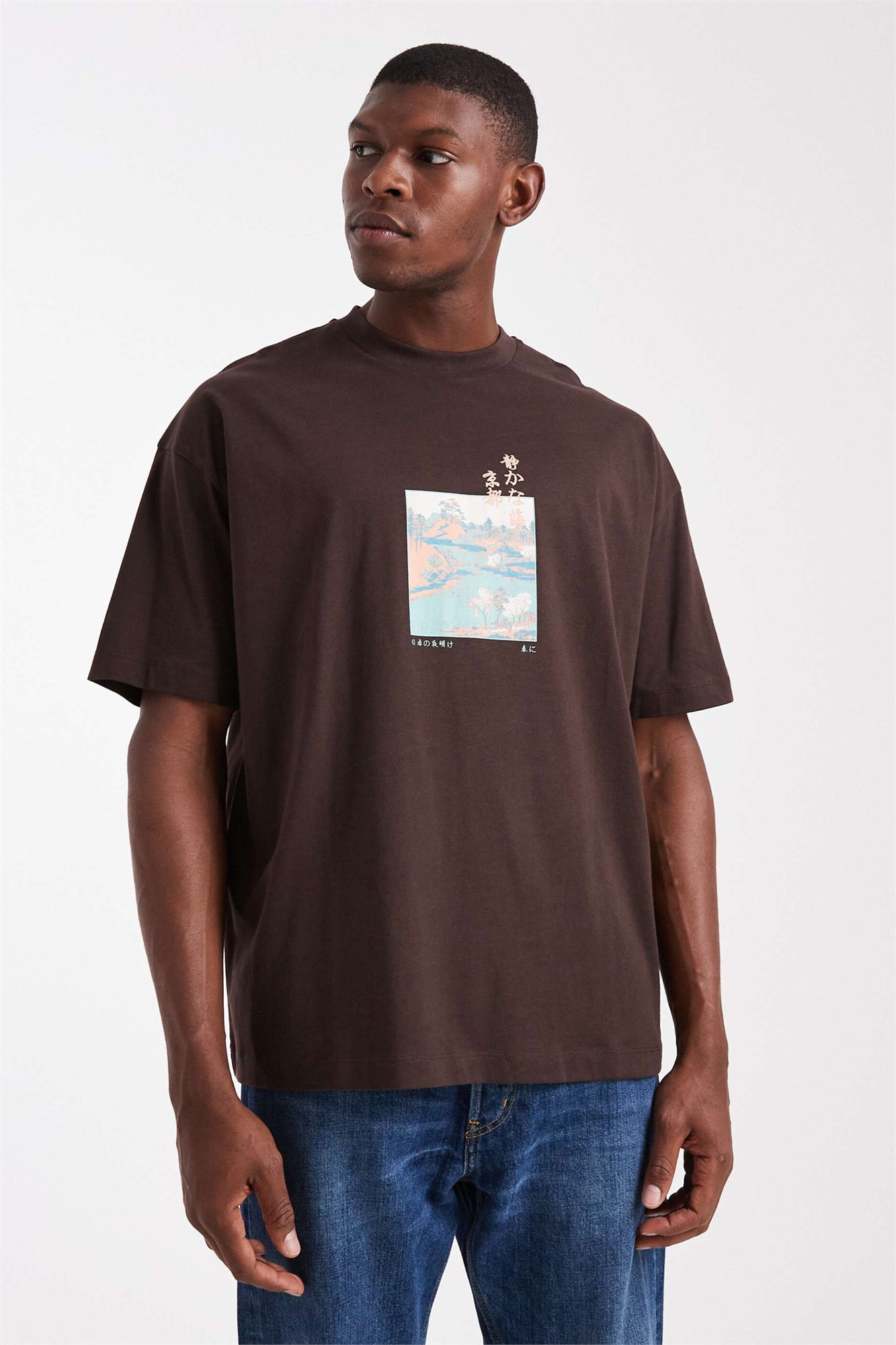 Футболка свободного кроя с пейзажным принтом