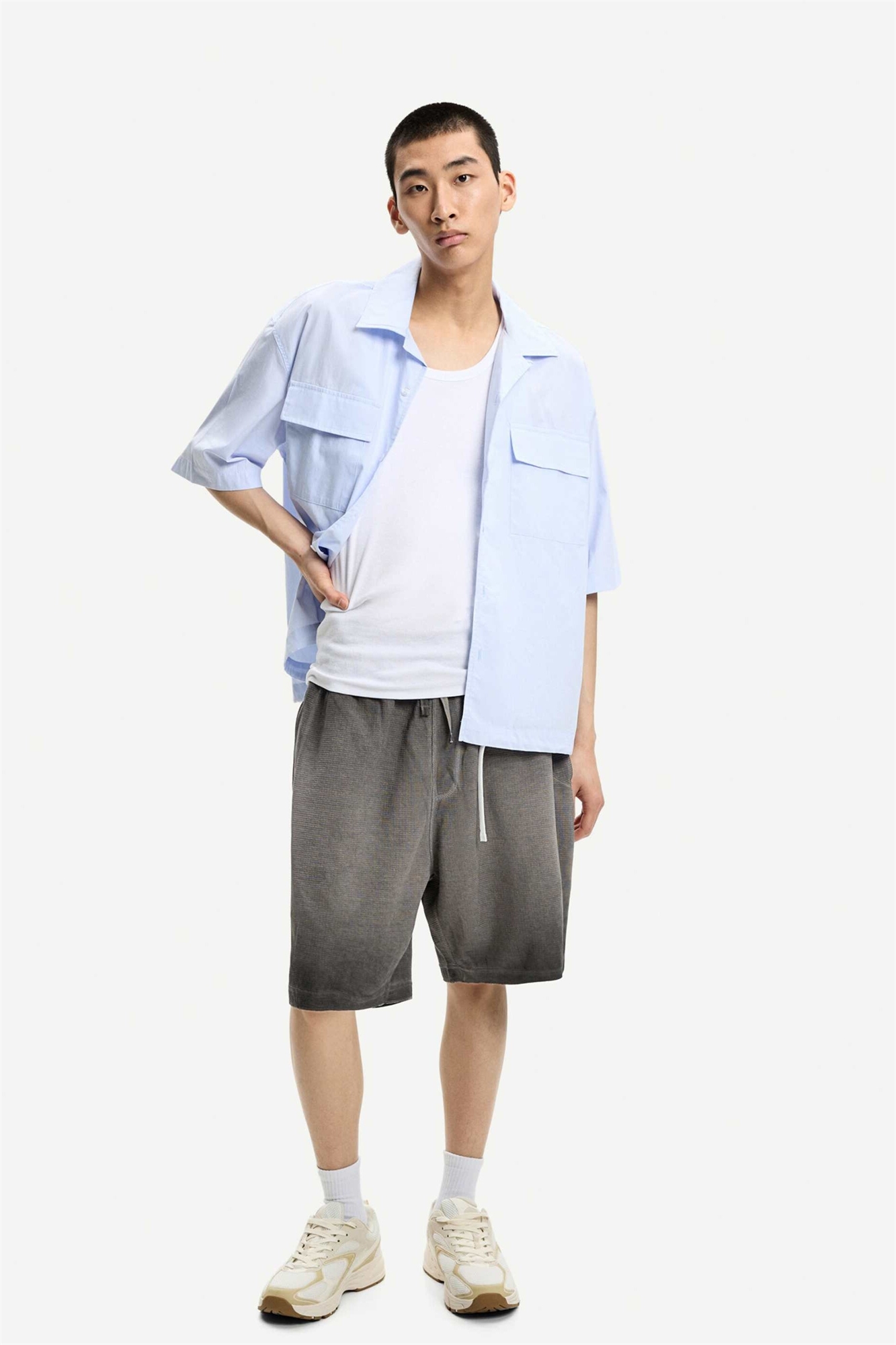 Бермуды из вафельной ткани с эффектом потертости