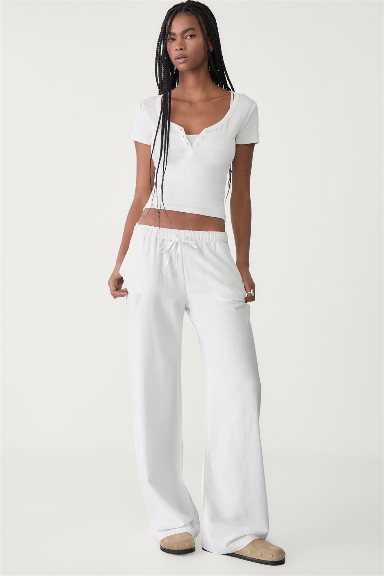 Брюки на шнурке из смесовой ткани