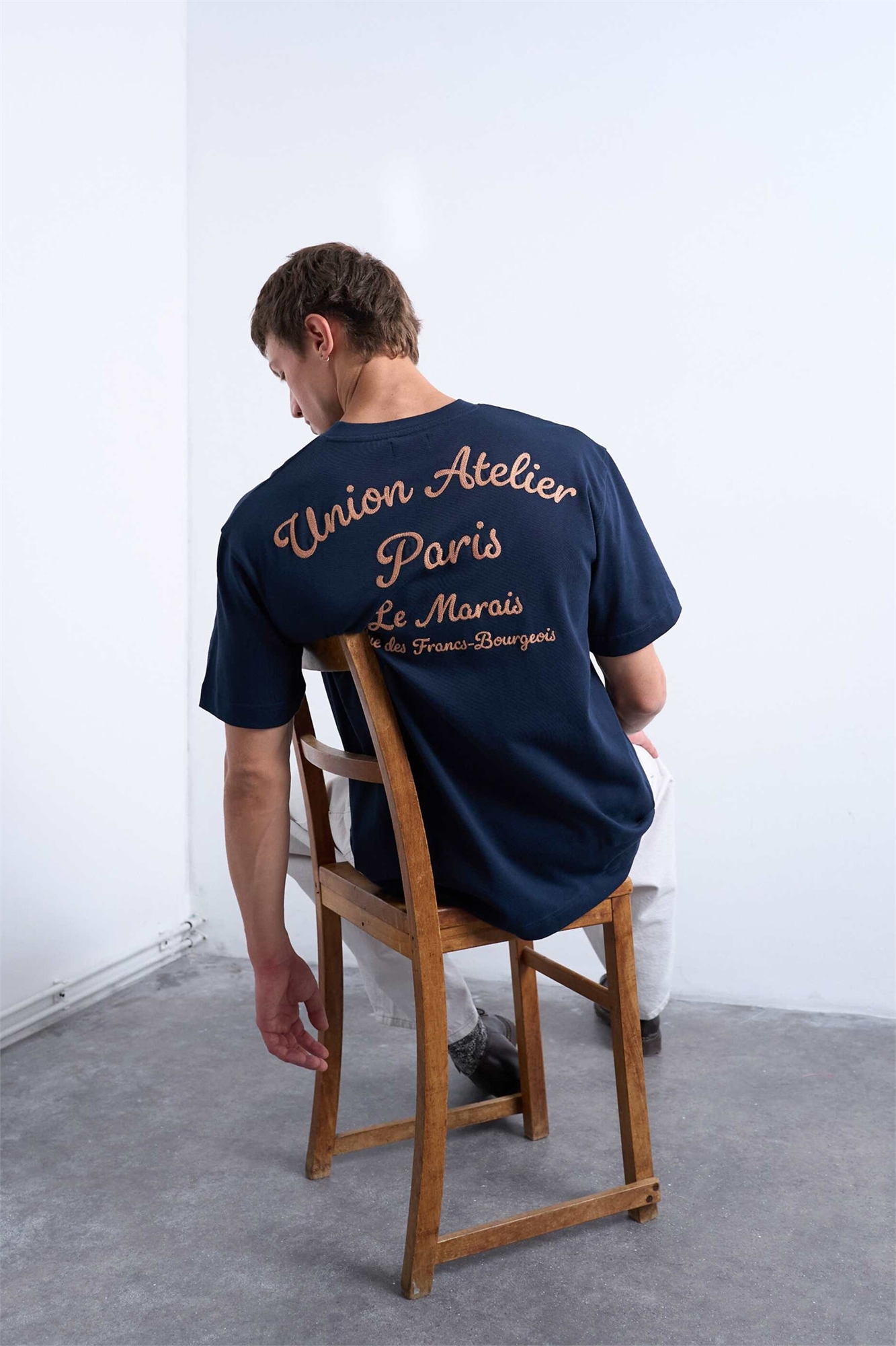Футболка свободного кроя с вышивкой Union Atelier темно-синего цвета