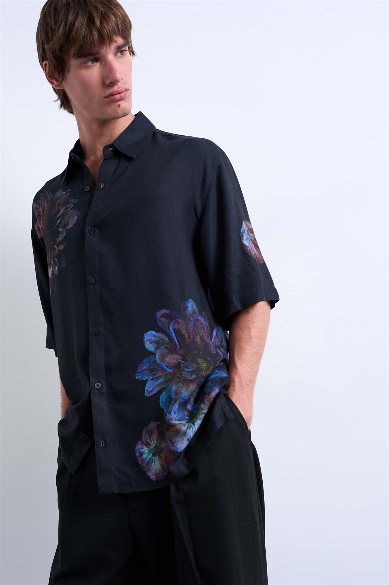 Рубашка из твила с короткими рукавами и свободным кроем, с нанесенным цветочным принтом