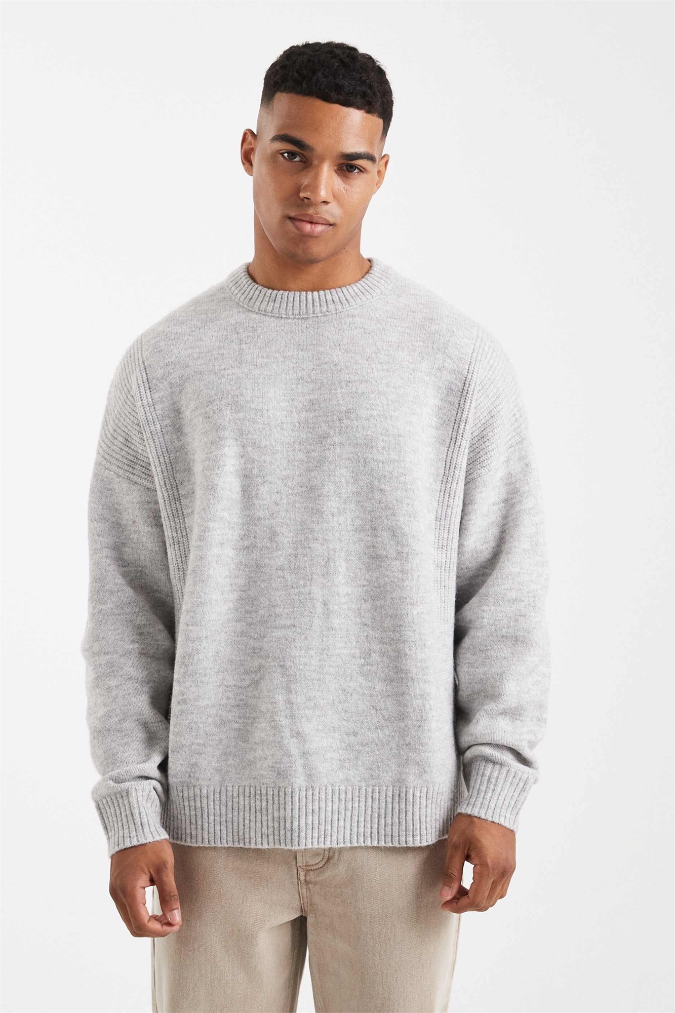 Свитер с вставками из вязаного ребристого полотна большого размера