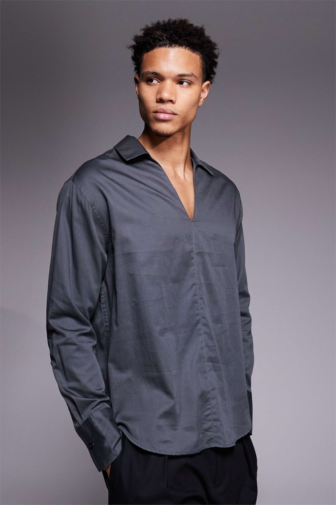 Рубашка с глубоким V-образным вырезом и свободным кроем