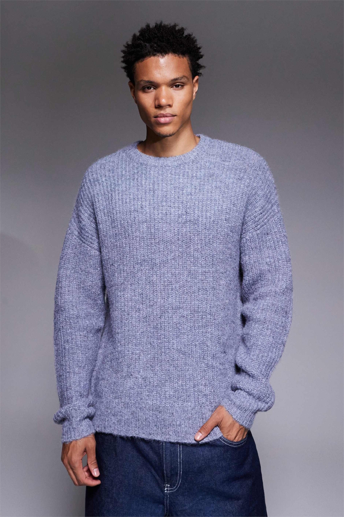 Свободный вязаный свитер с круглым вырезом