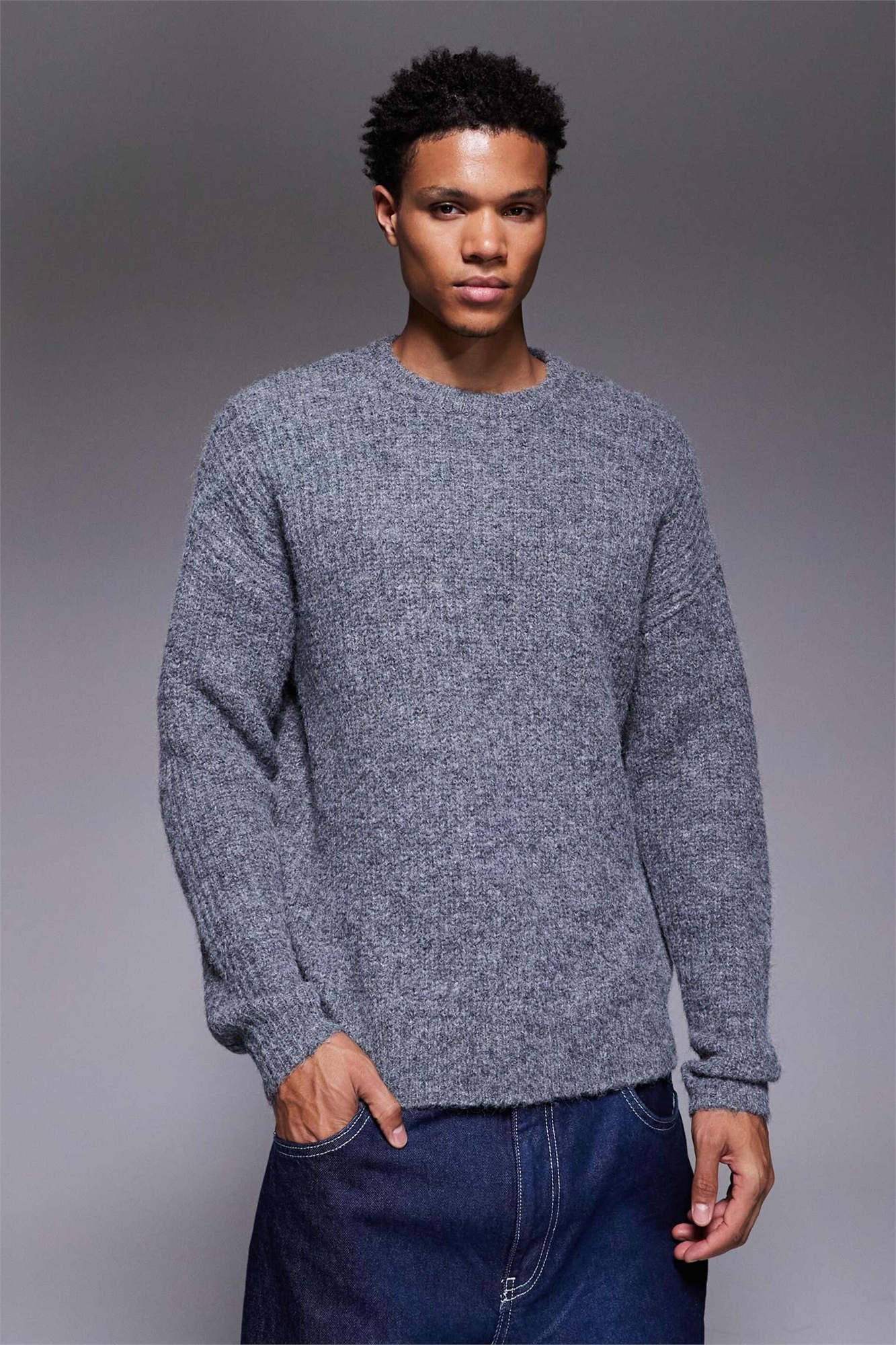Свободный вязаный свитер с круглым вырезом