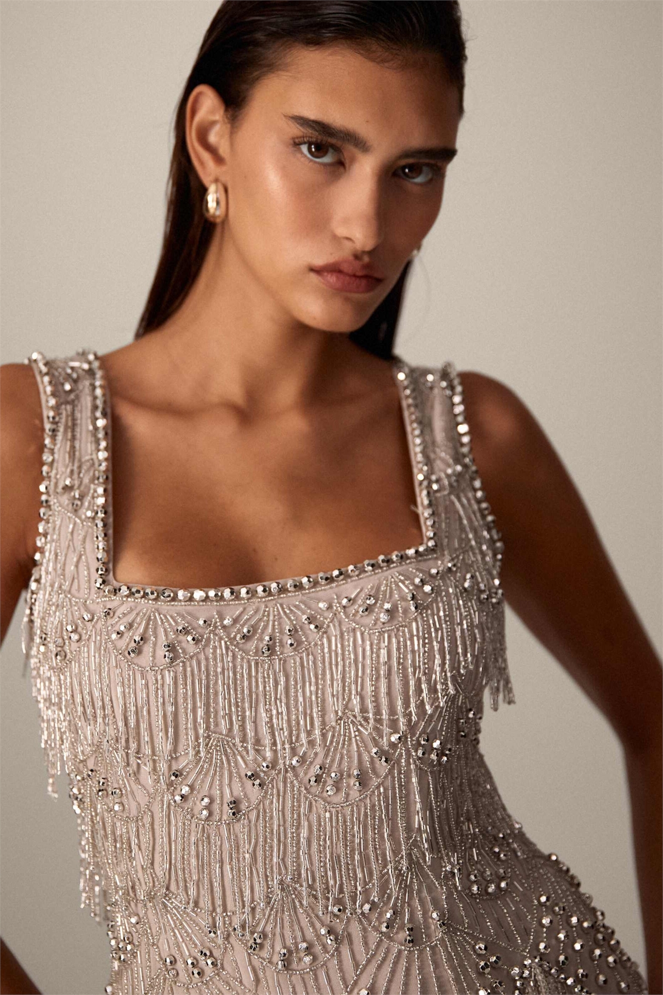 Топ с квадратным вырезом и бахромой из жемчужных бусин