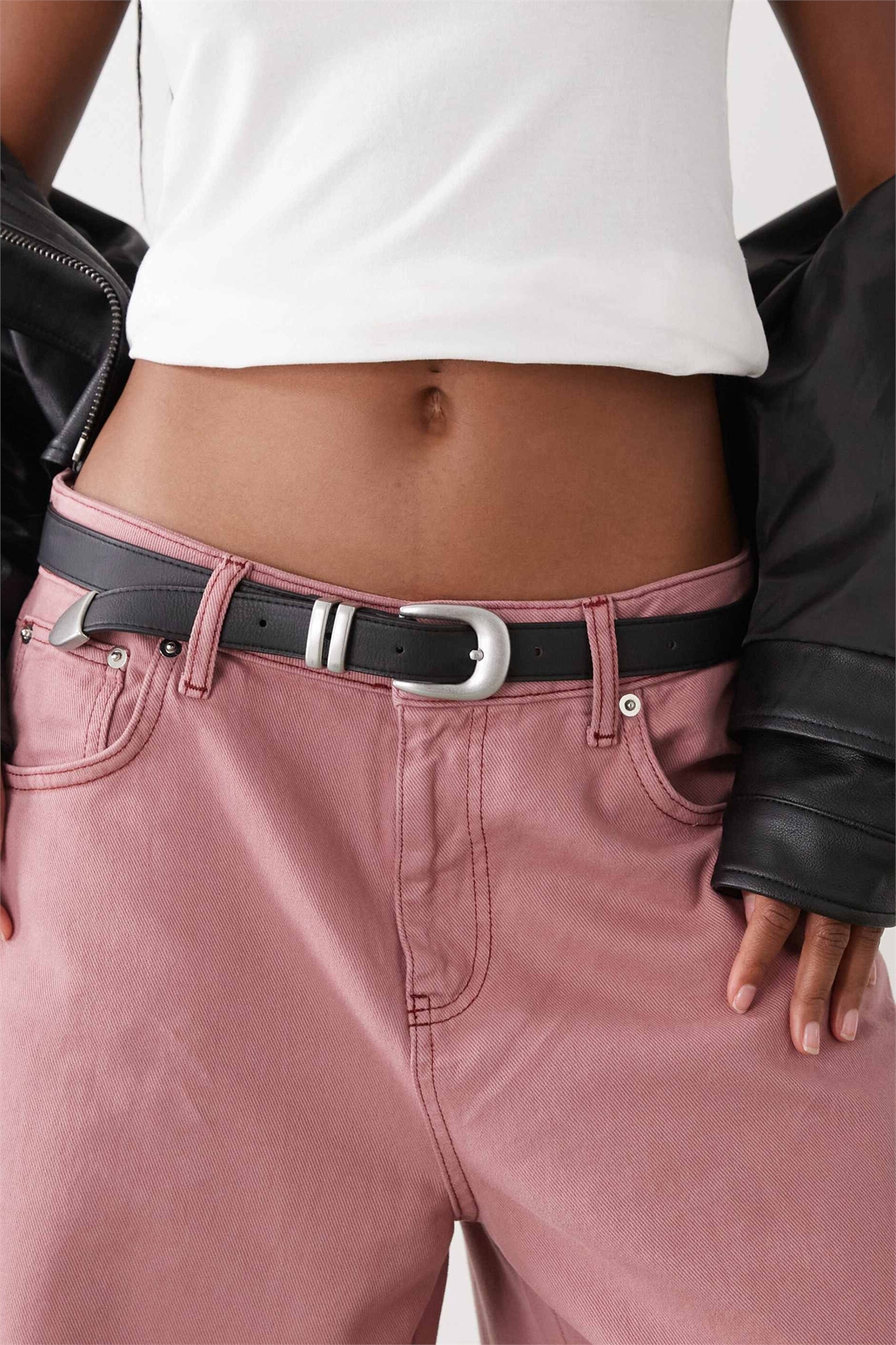 Тонкий ремень в западном стиле с серебряной пряжкой
