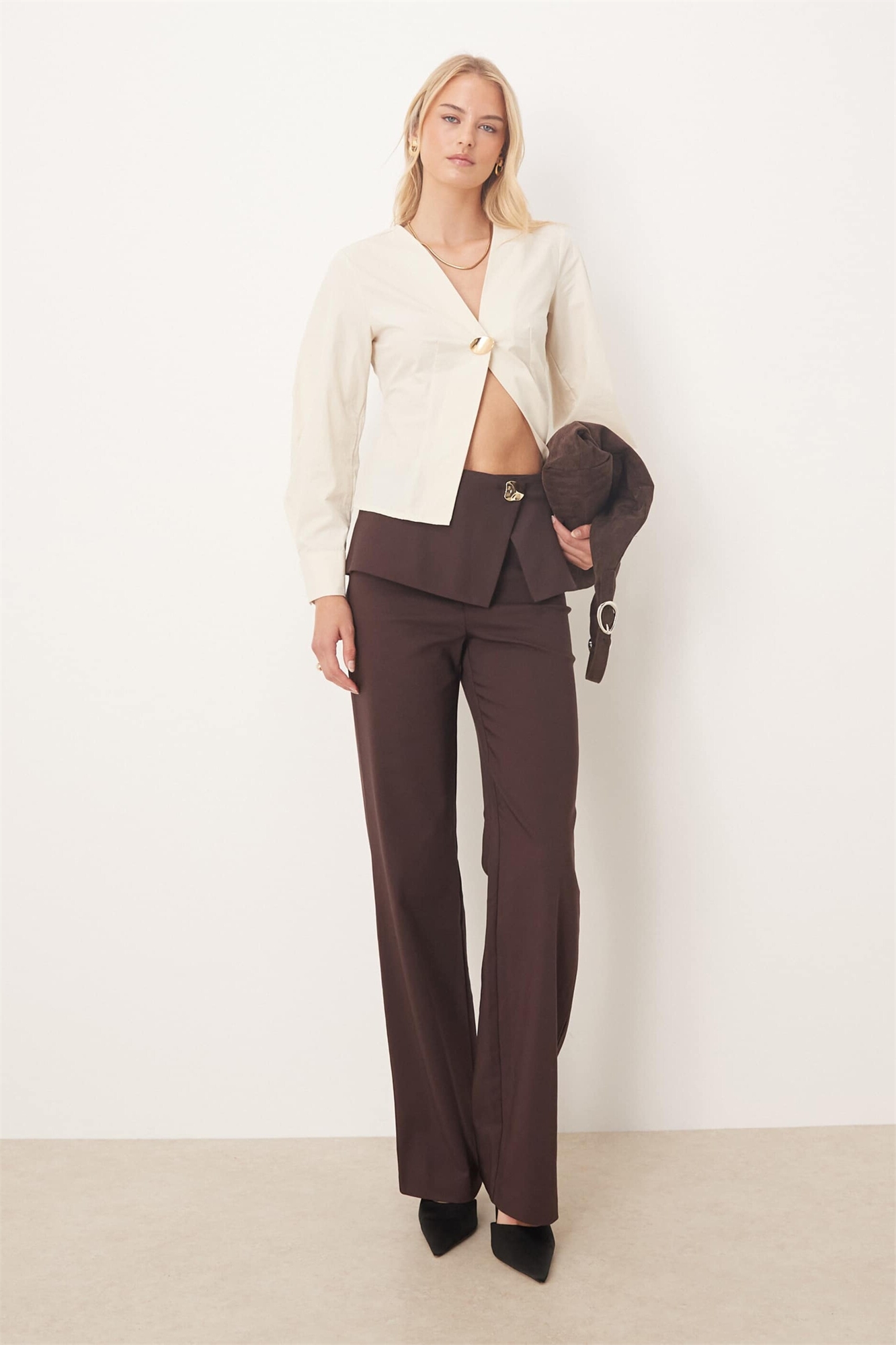 Высокие брюки с прямыми брючинами, с отложным верхом и золотыми пуговицами