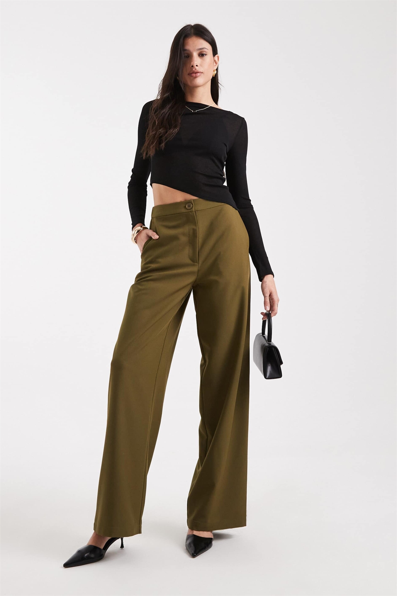 Высокие брюки с прямыми брючинами свободного кроя