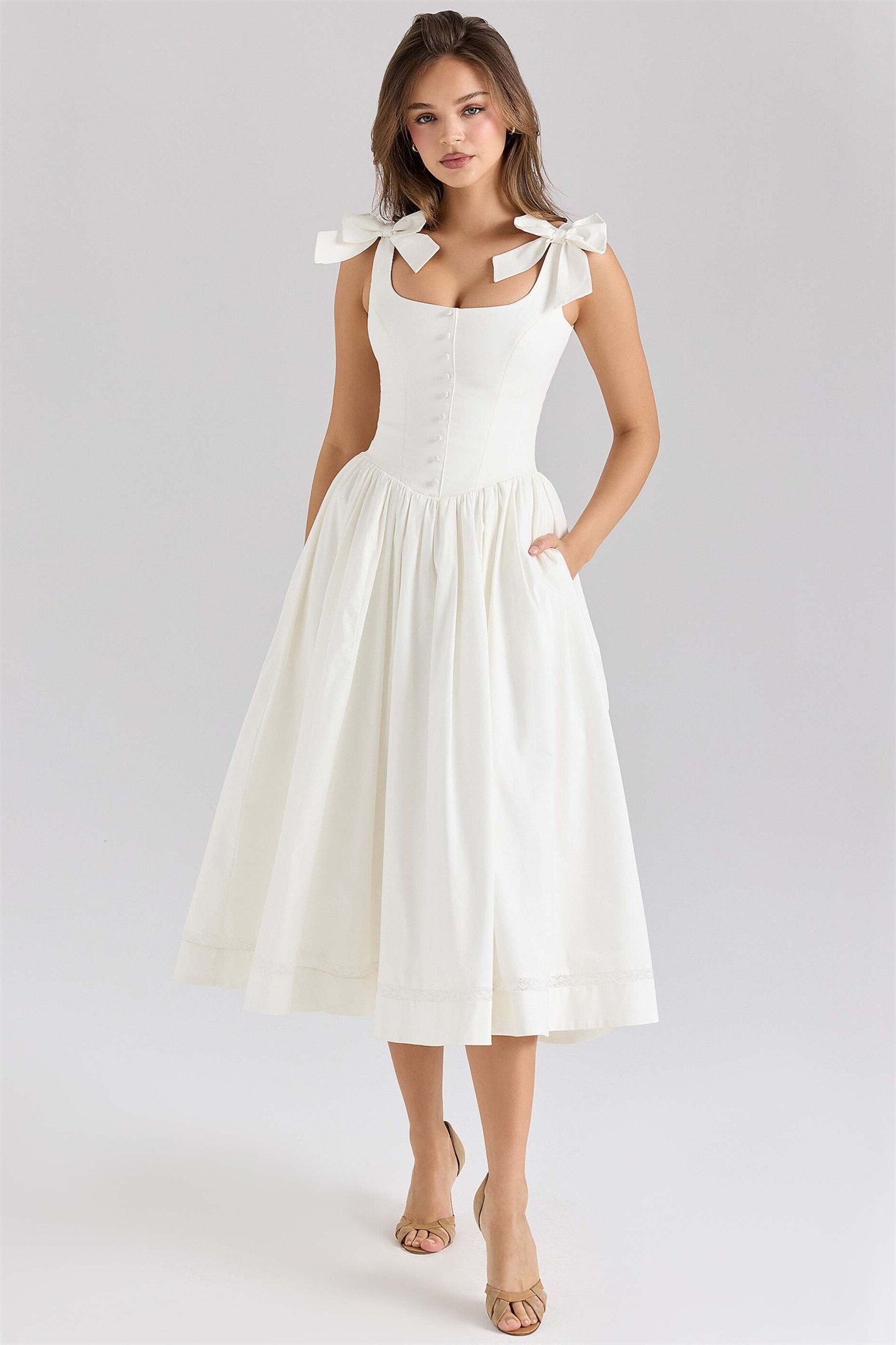 Платье-миди из эластичного хлопка с бантиком от Lillia
