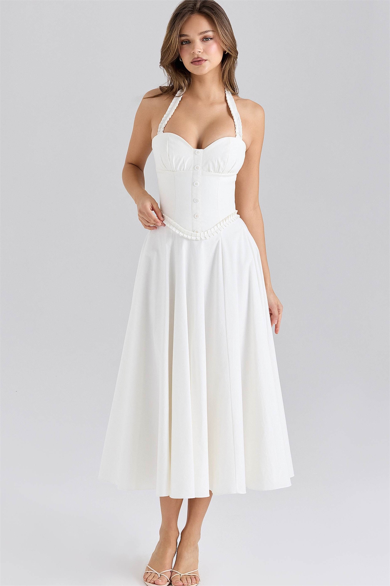 Платье средней длины из эластичного хлопка с завязками на шее от Georgie