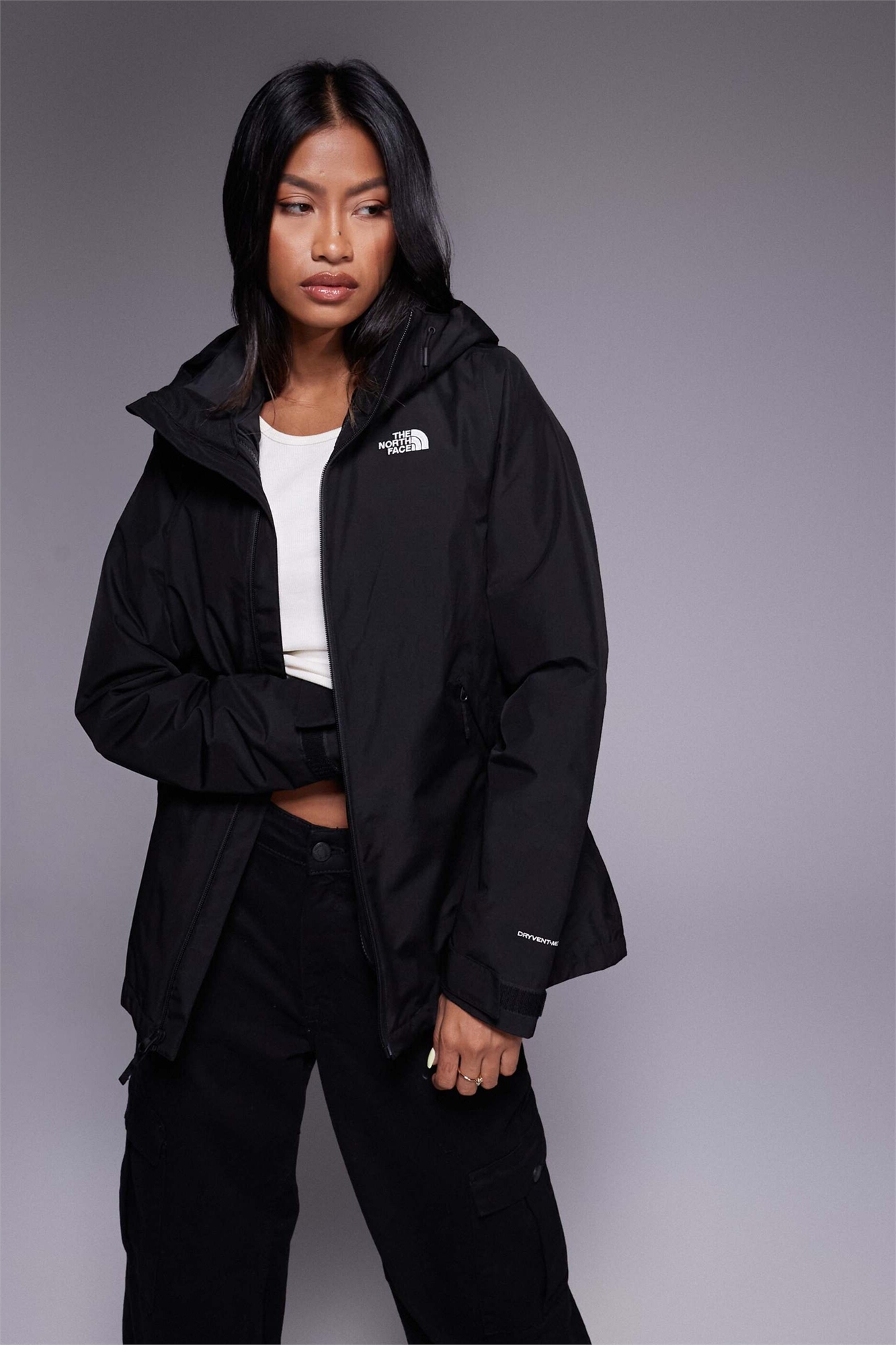 Ткань с простым переплетением Эластичная ткань с простым переплетением Использует технологию The North Face DryVent Прочная водоотталкивающая обработка для дополнительной защиты Водонепроницаемая, ветрозащитная и дышащая Позволяет выходить водяному пару Основной материал: 100% полиэстер.