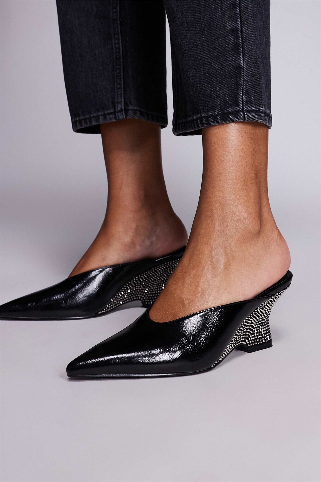 Ботильоны Spark на среднем каблуке-клине с каблуком, украшенным стразами