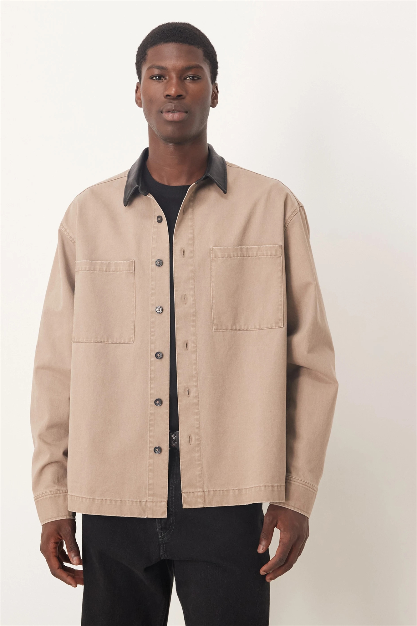 Рубашка свободного кроя с воротником из искусственной кожи