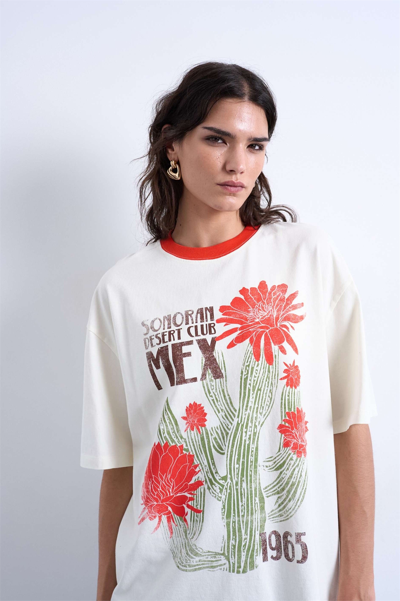 Футболка оверсайз с принтом «Графический кактус» и контрастной окантовкой
