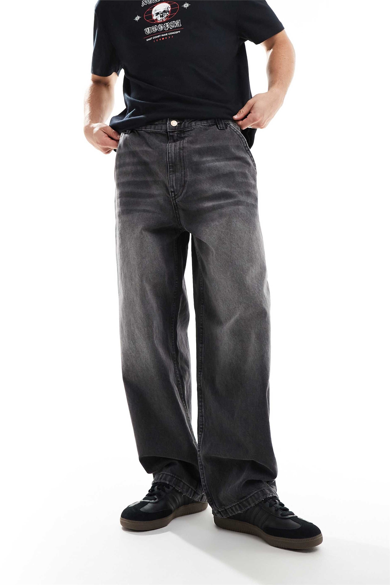 Неэластичный деним: черная стирка Основной материал: 100% хлопок.