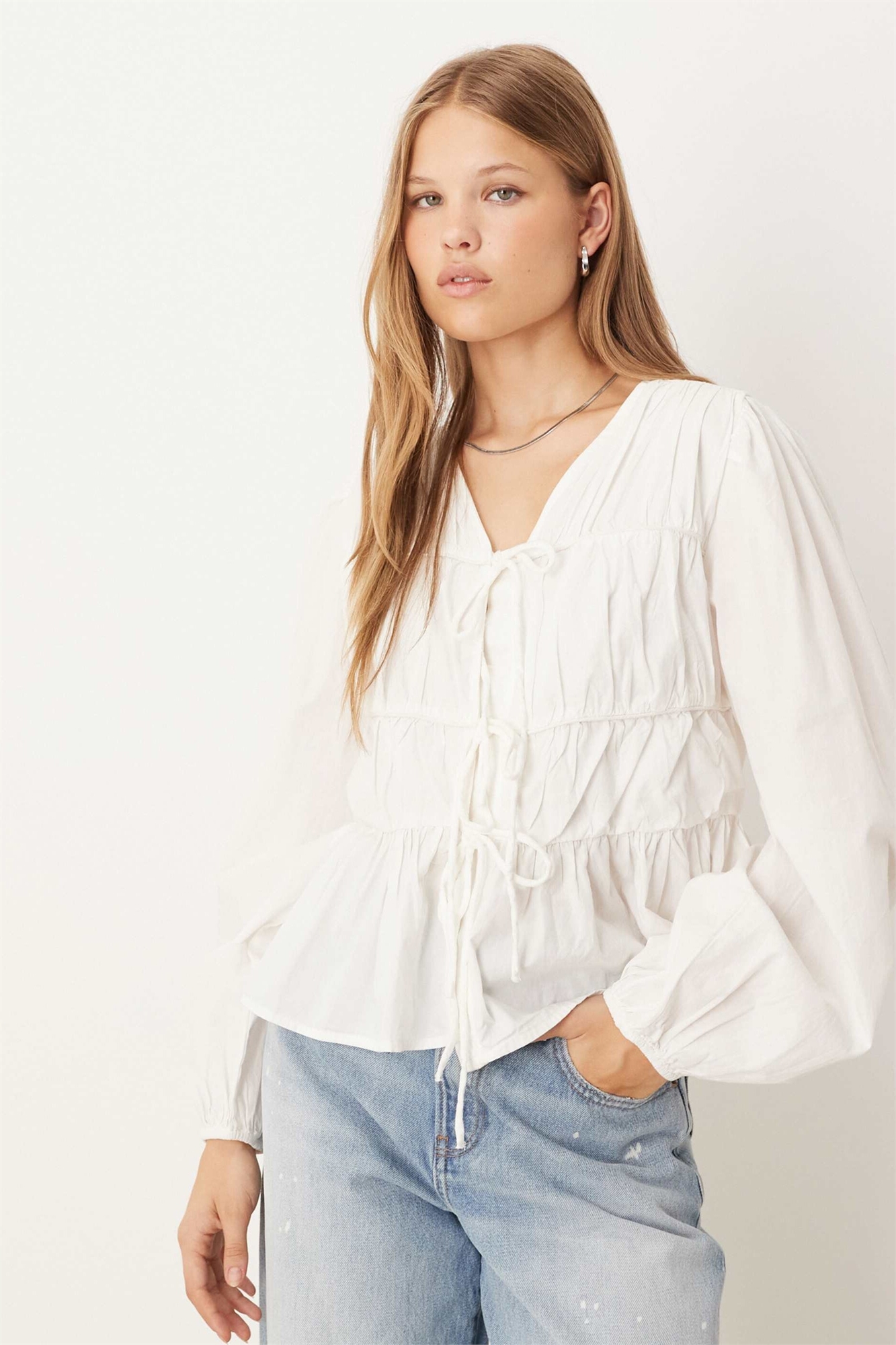 Блузка с завязками спереди и длинными рукавами