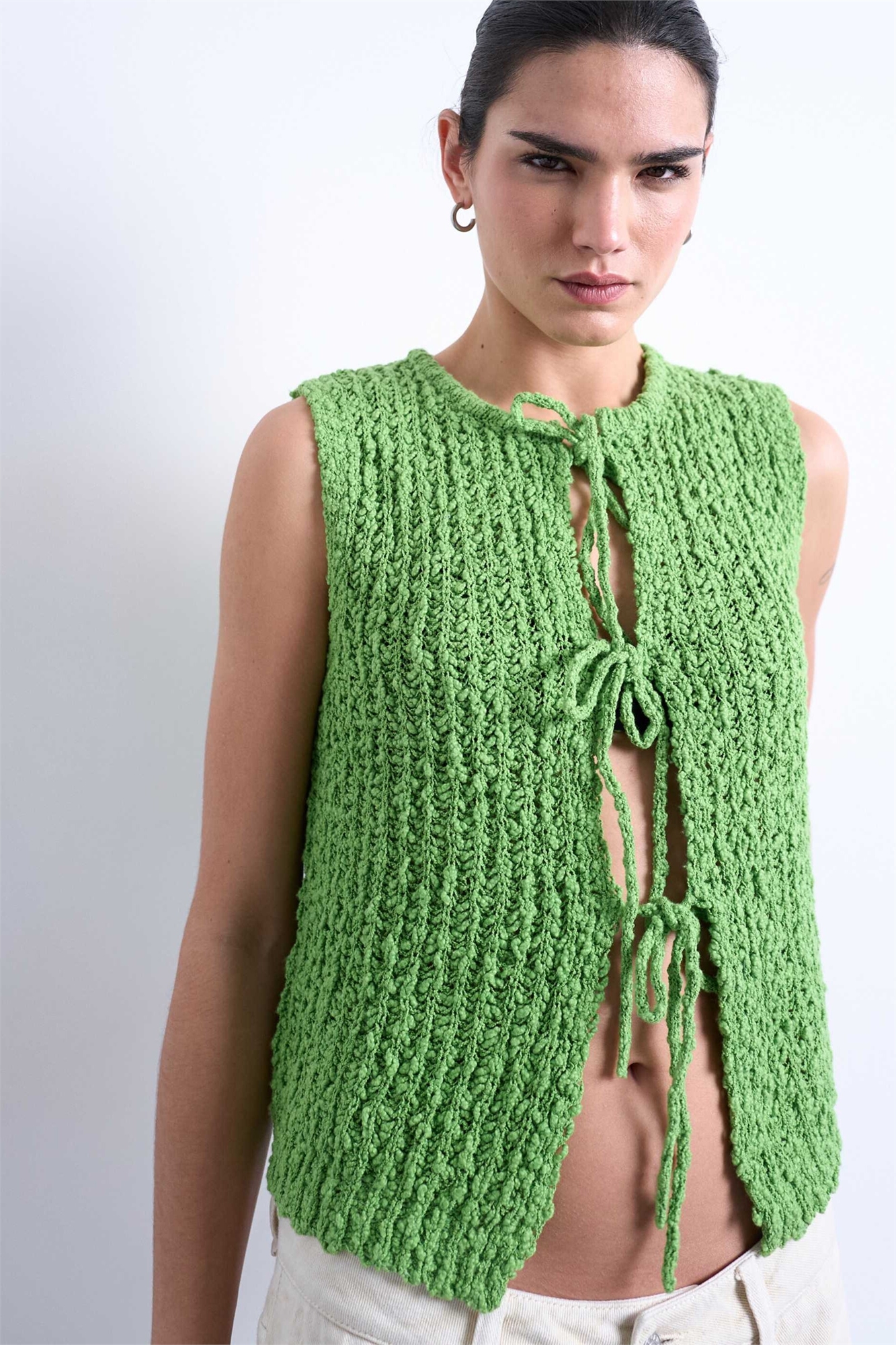 Жилет с завязками спереди и фактурной вязкой