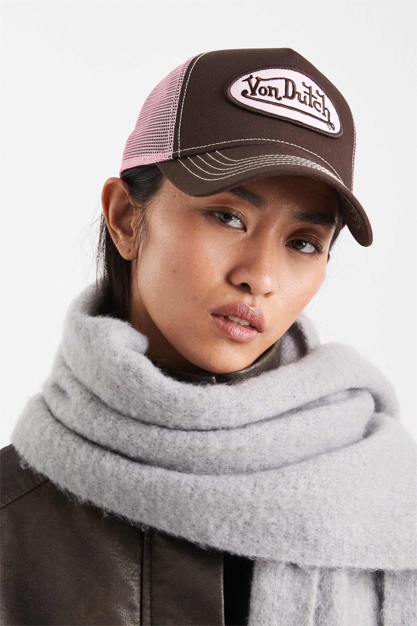 Классическая кепка-тракер коричневого и розового цветов