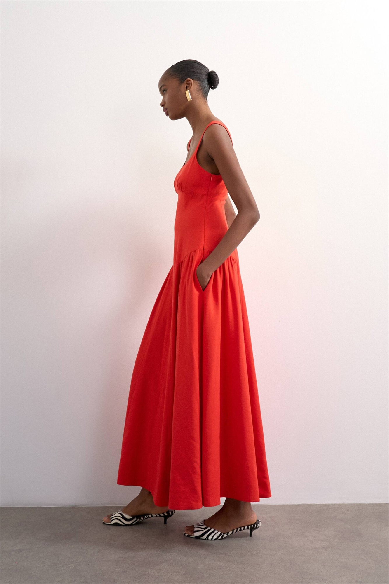 Льняное макси-платье с заниженной талией