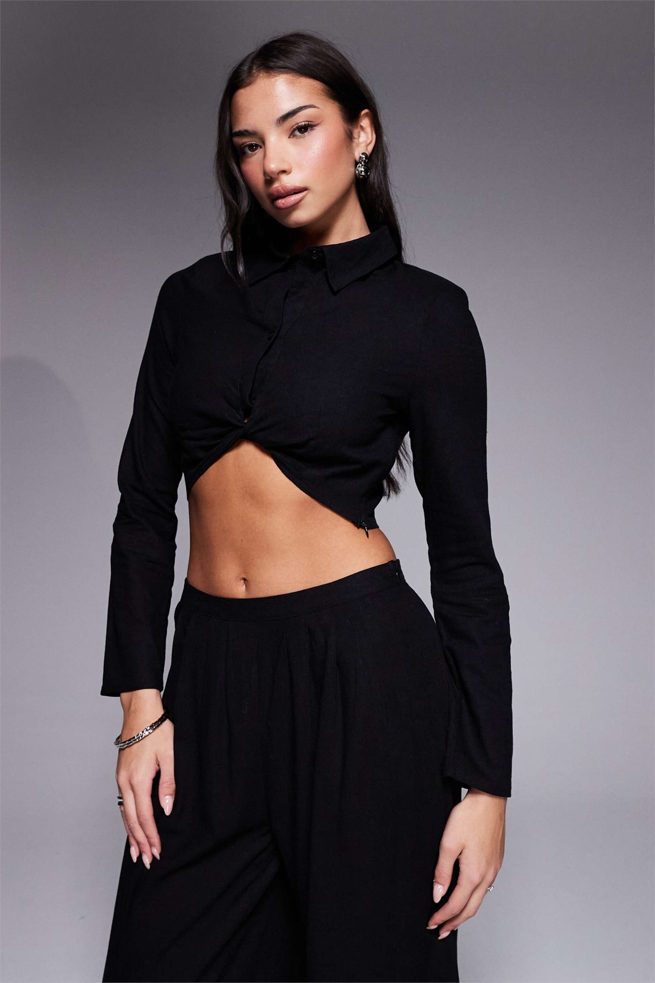 Эксклюзивная укороченная рубашка с длинными рукавами и объемными плечами, с преобладанием хлопка co-ord