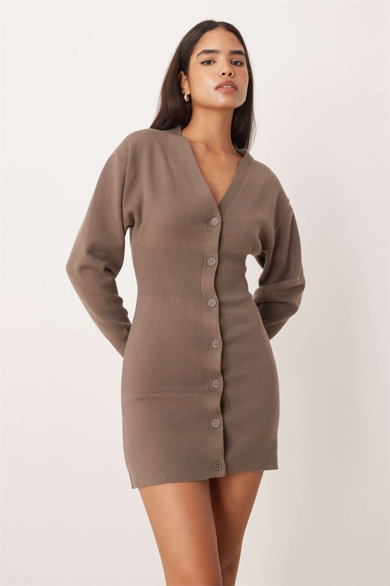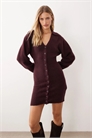 Мини-платье из трикотажа с V-образным вырезом и длинными рукавами-колокольчиками на пуговицах