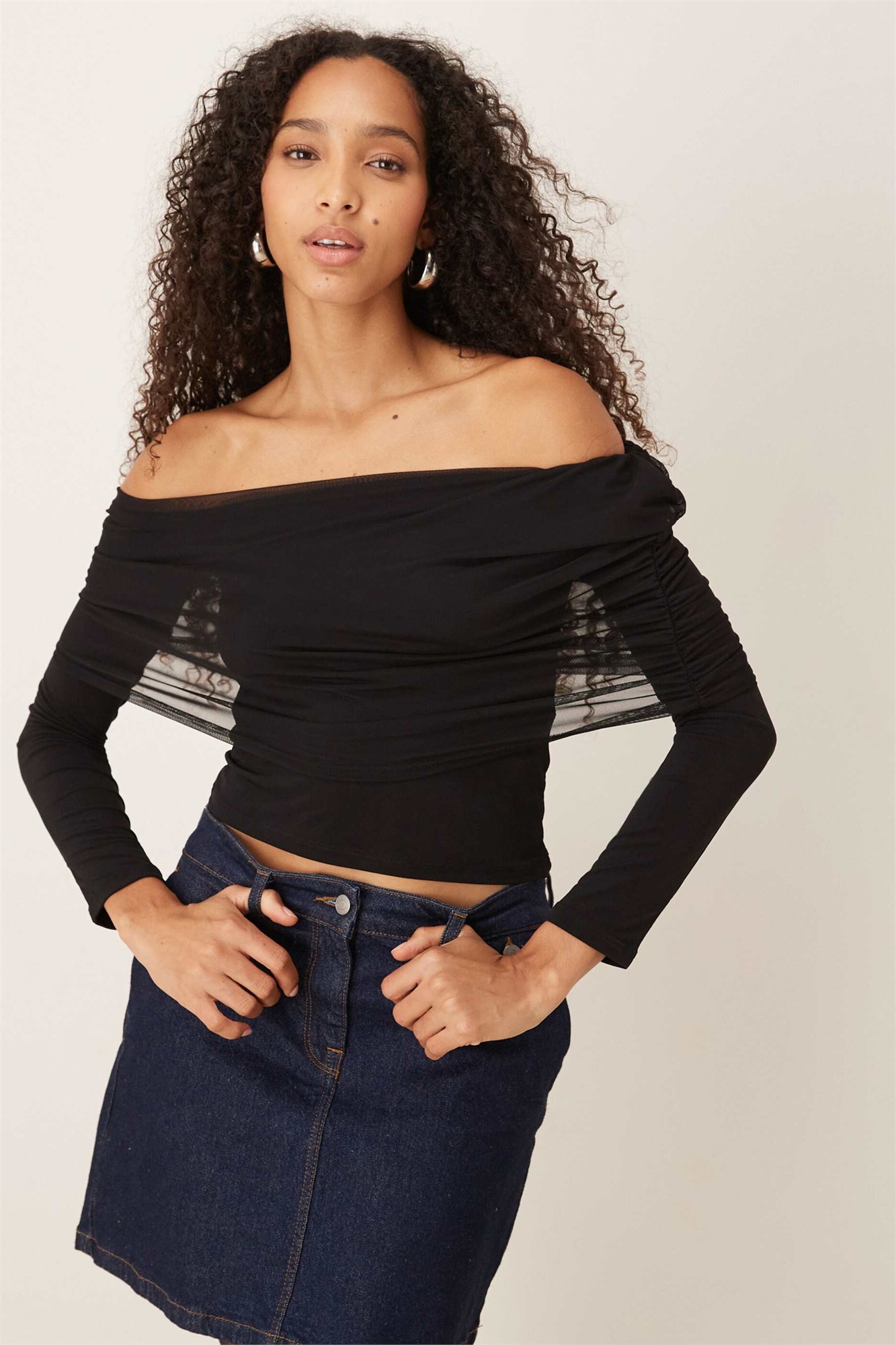 Топ с открытыми плечами из сетчатого материала