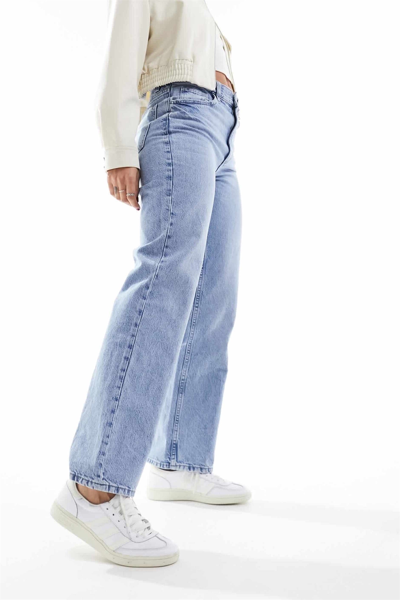 Неэластичный деним: светло-голубой оттенок Основной материал: 100% хлопок.