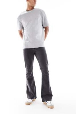 Джинсы-клин с расклешенными штанинами, черного цвета, с эффектом вымывания