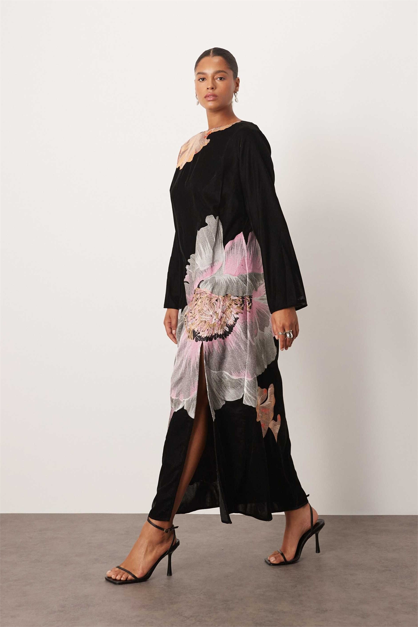Макси-платье из бархата с вышитым цветочным узором