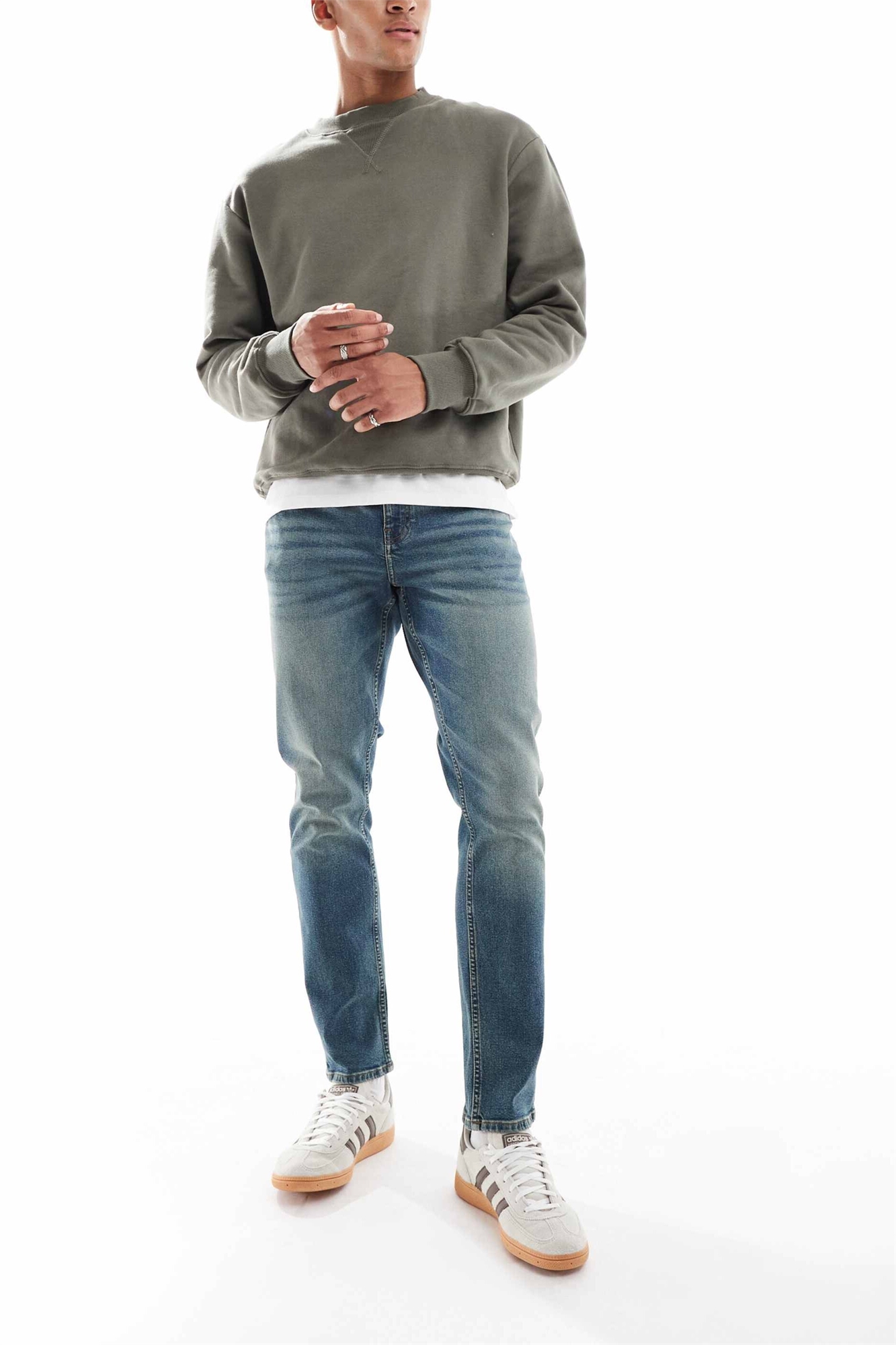 Узкие джинсы средней промывки синего цвета с оттенком