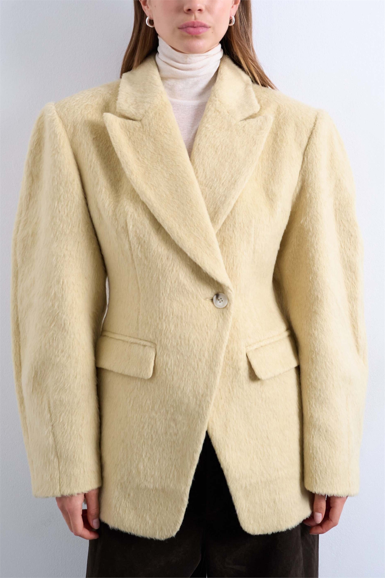 Блейзер-пальто овальной формы с ворсованной отделкой и затягивающейся талией