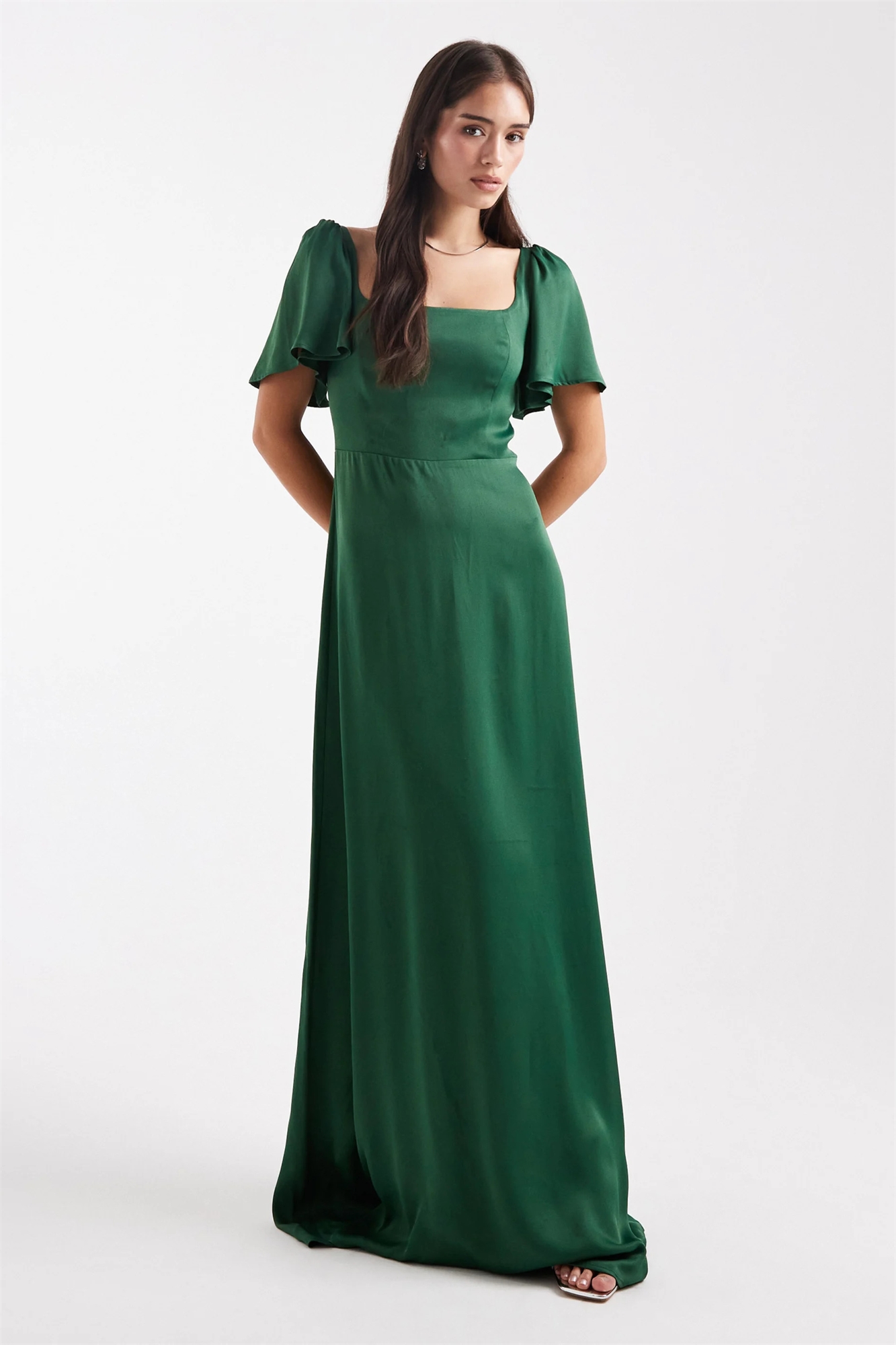 Макси-платье для подружки невесты с квадратным вырезом и рукавами-крылышками