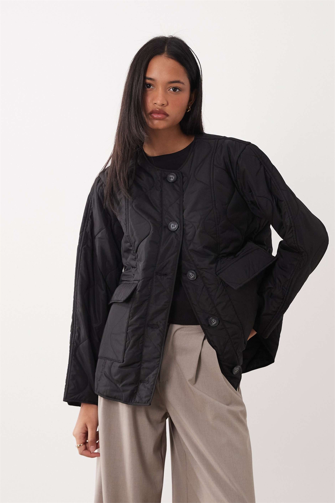 Короткая стеганая куртка Onion с карманами, черного цвета