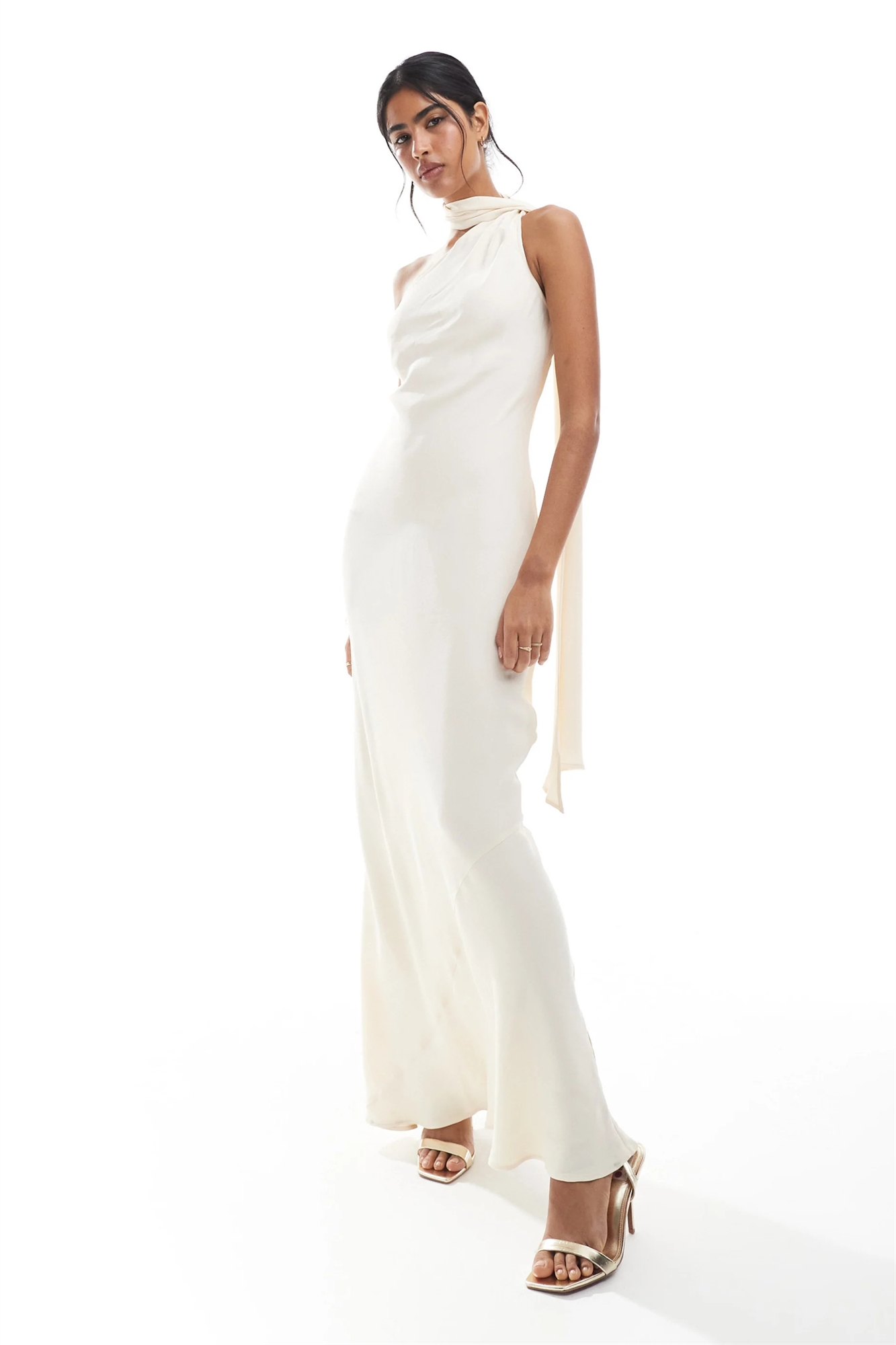 Макси-платье с одним плечом и шарфом для подружки невесты