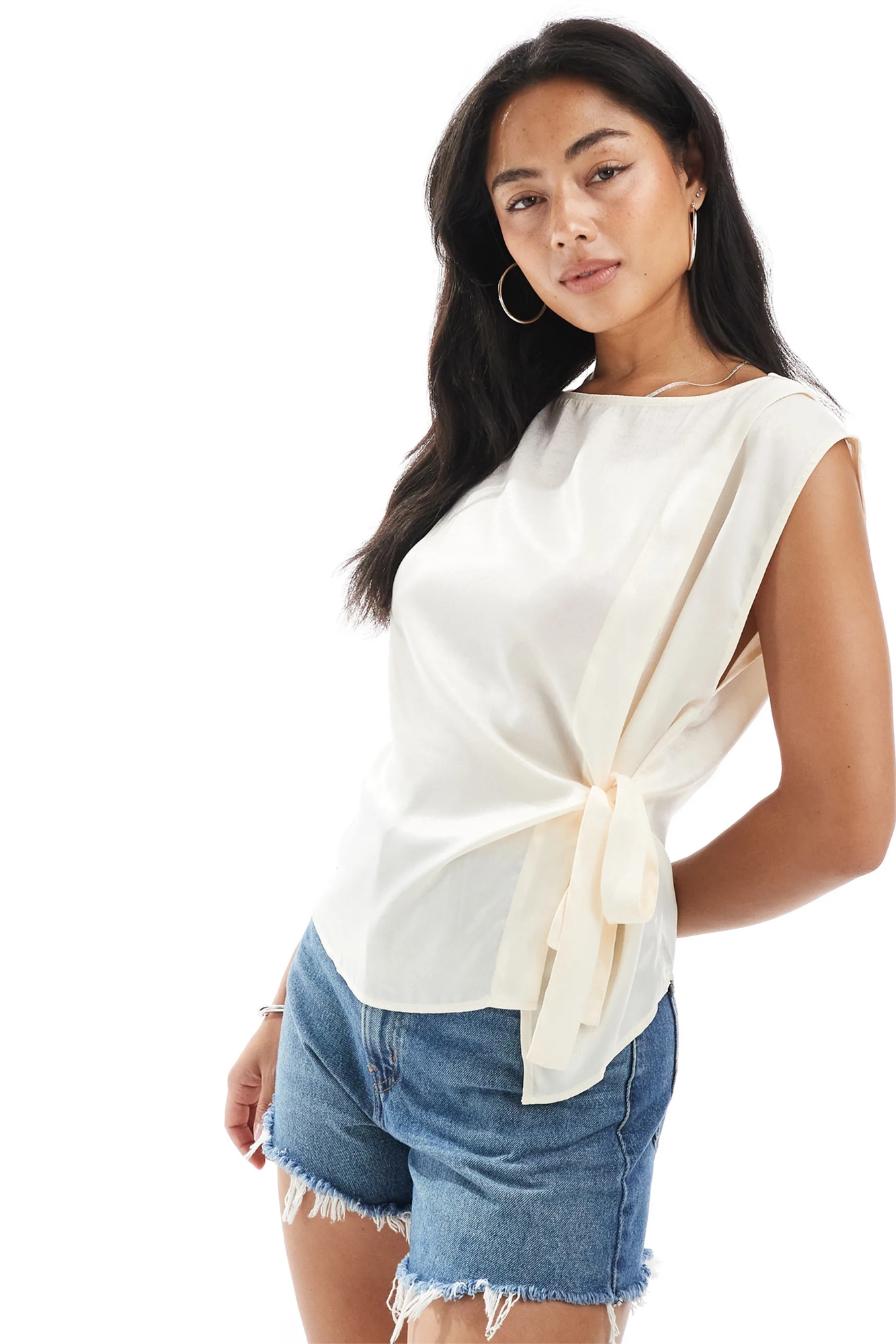 Атласный топ без рукавов с завязками по бокам