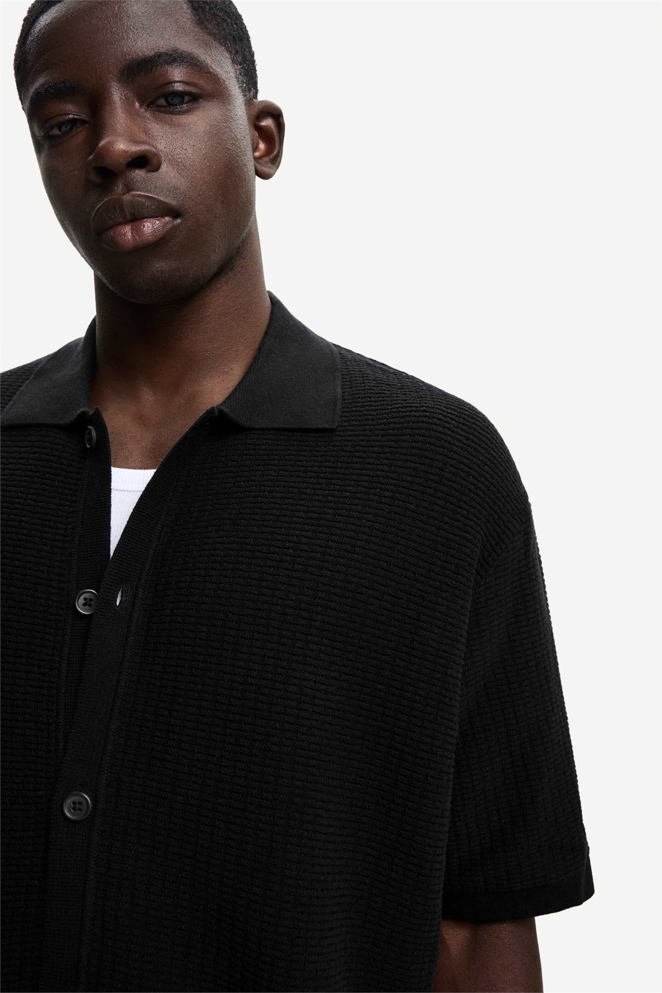 Текстурированная рубашка с короткими рукавами черного цвета