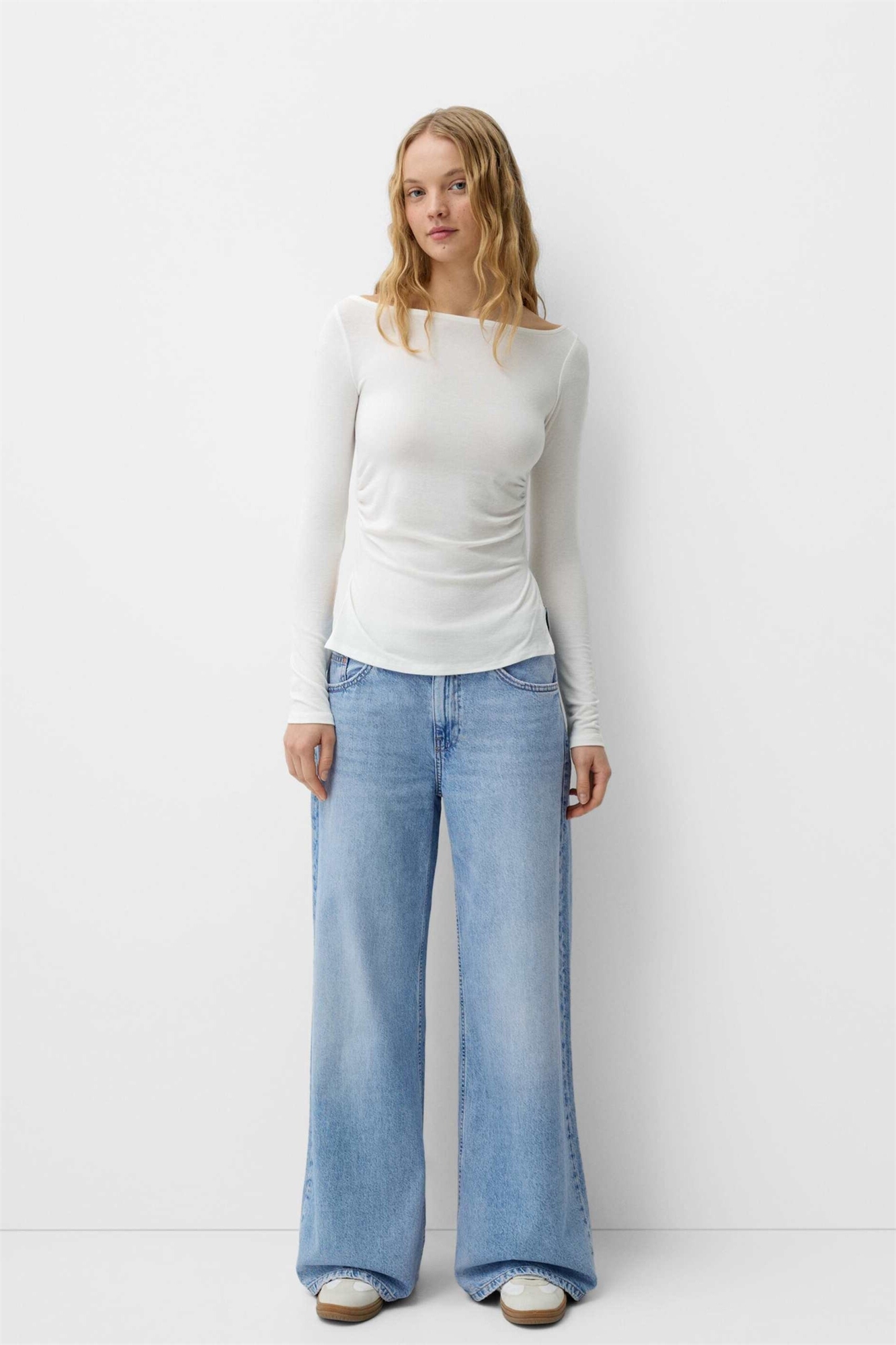 Джинсовая ткань без эластана: оттенок «средне-синий». Основной состав: 100% хлопок.